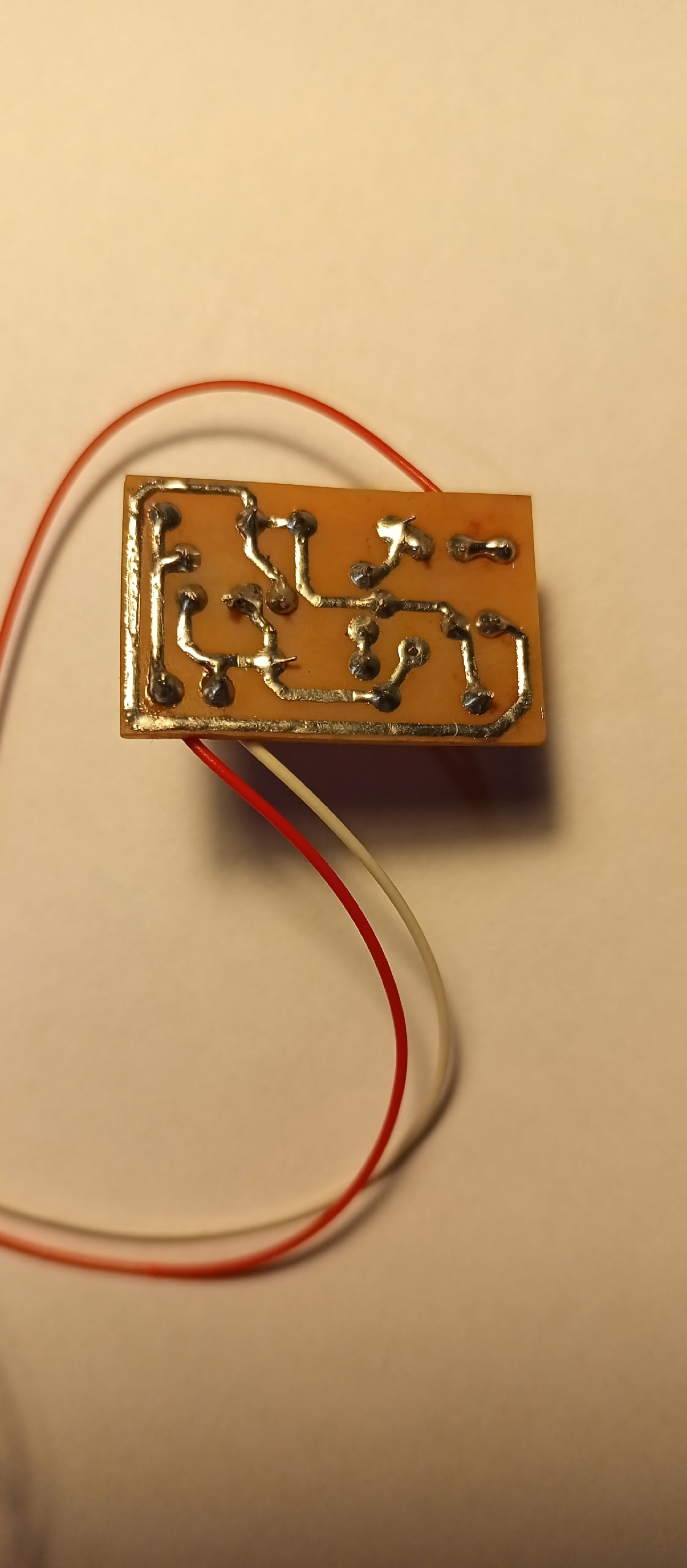 Трассировка дорожек для платы. Квадратные площадки это плюсовые соединения, большие круглые, это минус, овальный вывод, это выход сигнала с микрофона.