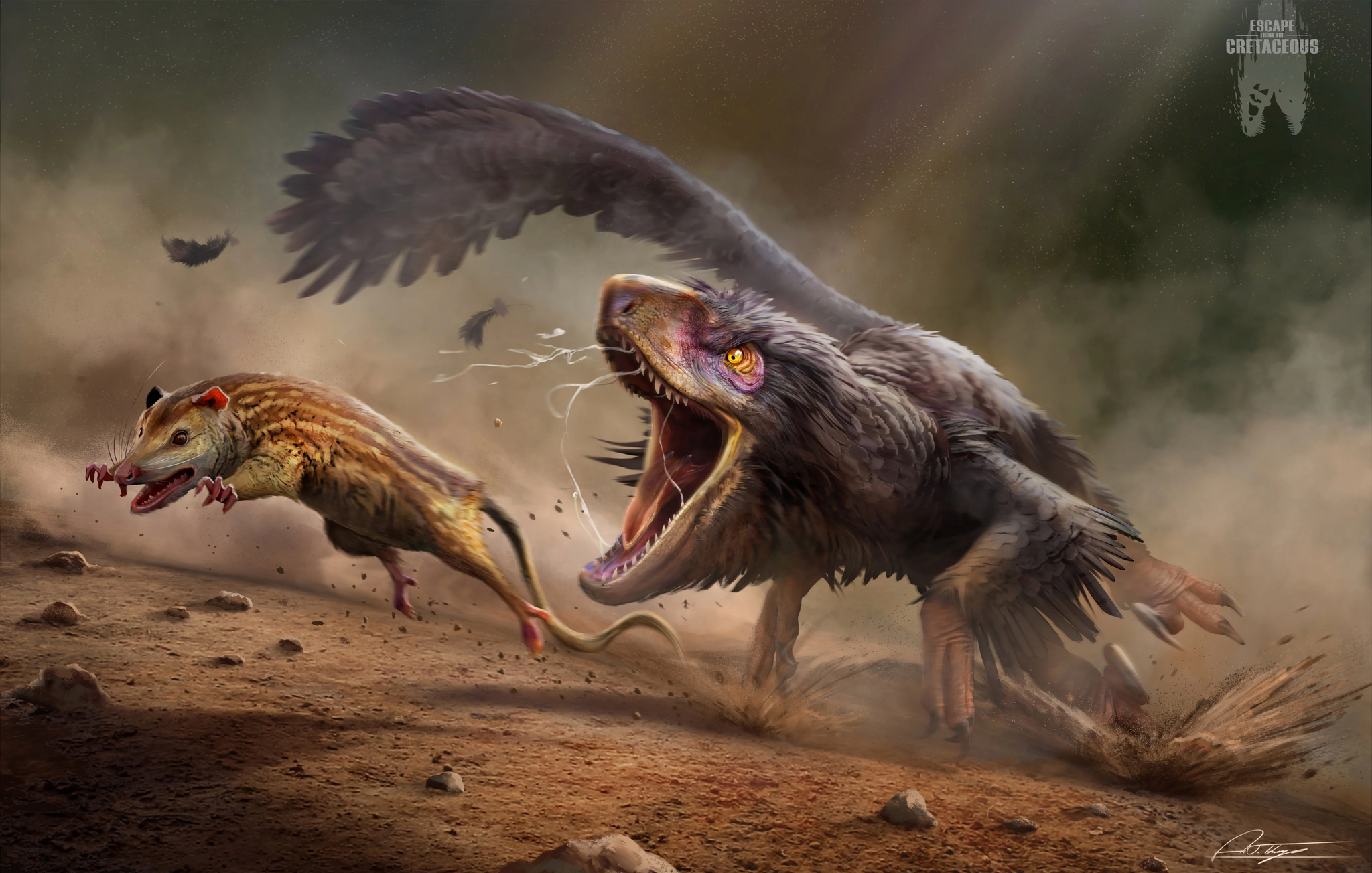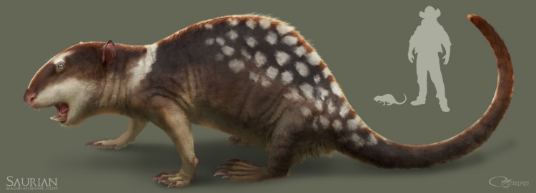 Братья наши старшие тоже водились в позднем меле. Вообще, многие недооценивают возраст такой группы животных, как млекопитающие. А ведь они появились почти что вместе с динозаврами, более 200 млн лет назад. А сейчас мы обсуждаем Хелл-Крик, датируемый 66 млн лет назад. То есть млекопитающие уже существовали 150 млн лет на планете. Во что же они выросли за это время? Во-первых, были разные группы метатерий. Метатерии — это такая группа млекопитающих, включающая всех современных и вымерших сумчатых, а также вымершие таксоны, близкие к сумчатым.