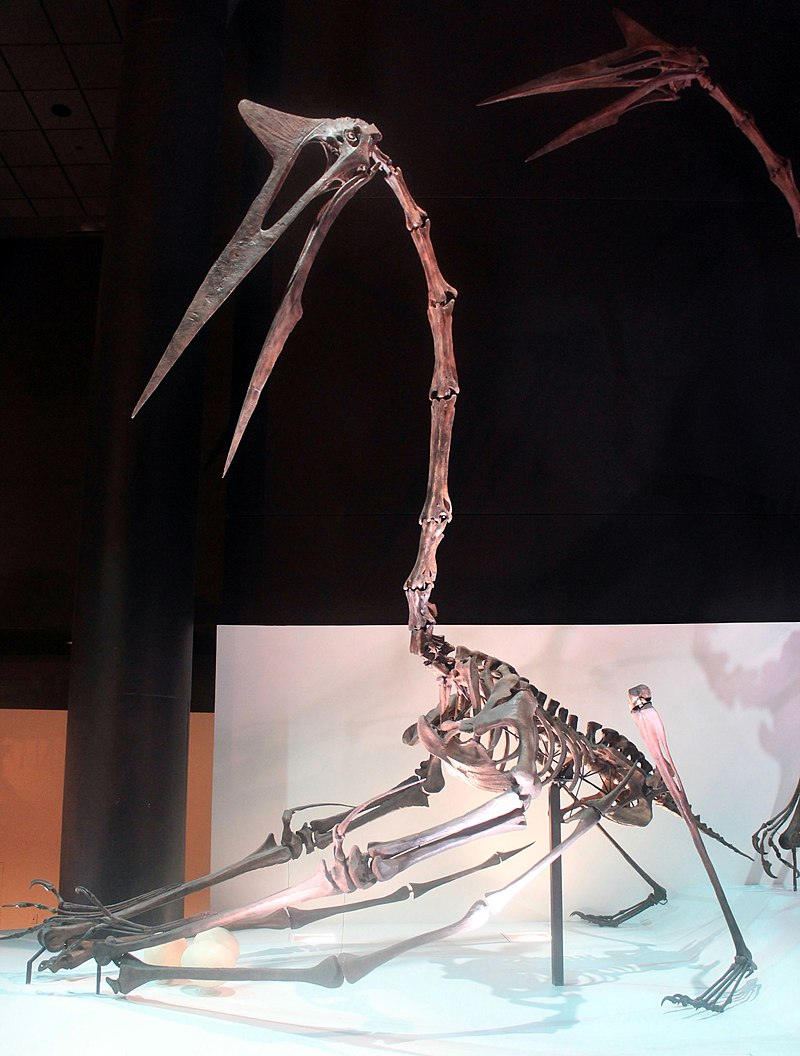 Например птерозавры. По соседству со знаменитыми тираннозаврами и трицератопсами жил огромнейший птерозавр кетцалькоатль. На сегодня он считается крупнейшим летающим животным в истории. Размах крыльев доходил до 11 метров, а масса была около центнера. Несмотря на то, что кетцалькоатль больше известен по отложения в Техасе, в Хелл-Крике нашли позвонок аждархида (семейство птерозавров, к которому относится кетцалькоатль) в 2002-м году. Предположительно это позвонок как раз кетцалькоатля с размахом крыльев до 6 метров.