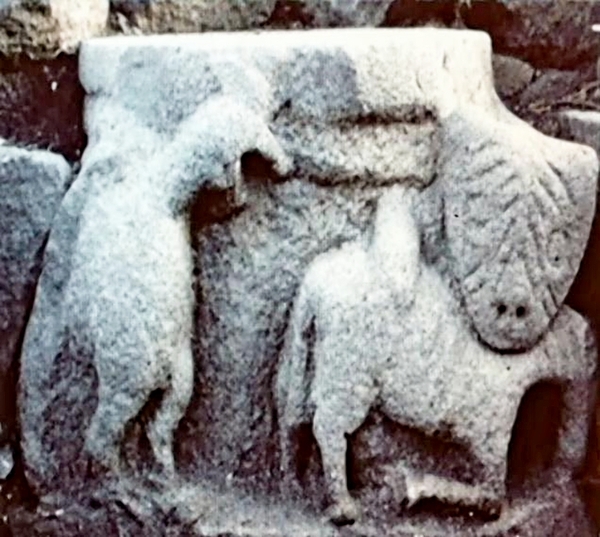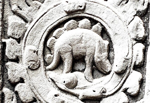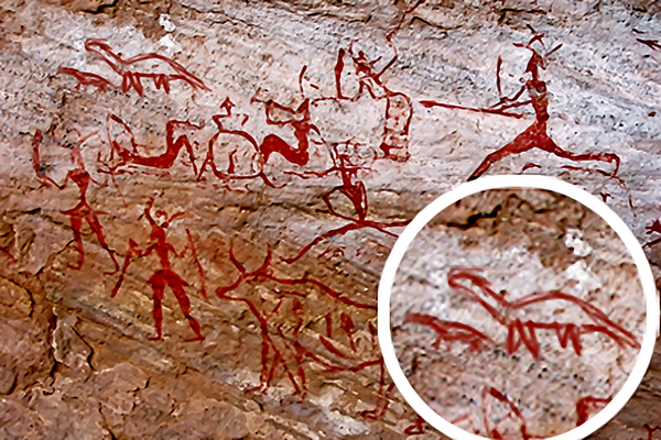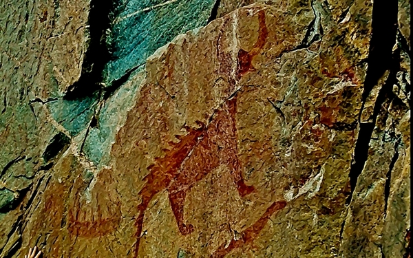 Изображение динозавра в пещере гор Качина-Бридж. Natural Bridges National Monument. Юта