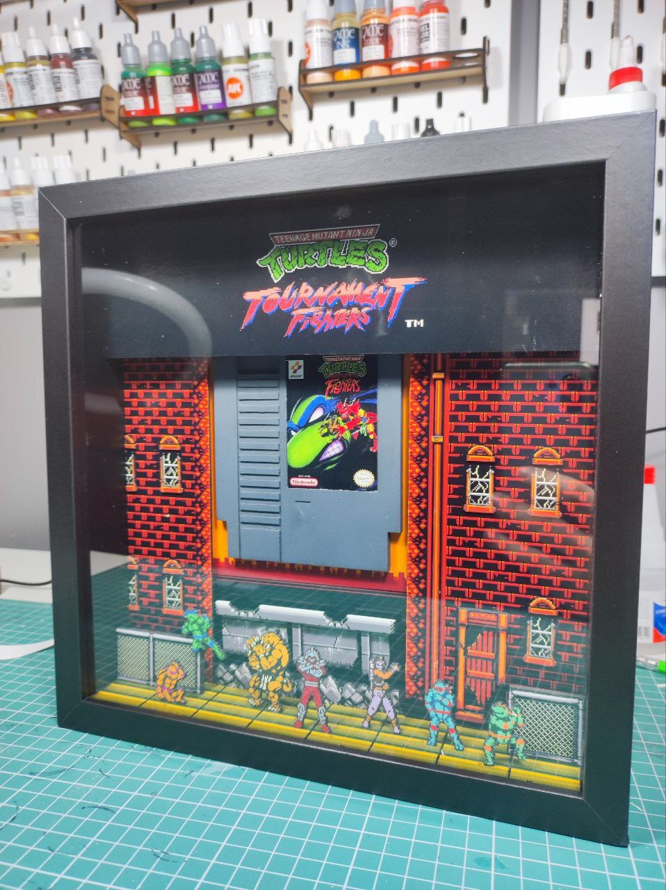Хотим сделать диораму по Teenage Mutant Ninja Turtles: Tournament Fighters, лезем в гугл и ищем исходные спрайты - это легко. К сожалению, формат игры слишком вытянут в горизонталь. По краям сверху и снизу получатся довольно широкие полоски, либо по краям придется слишком много обрезать.