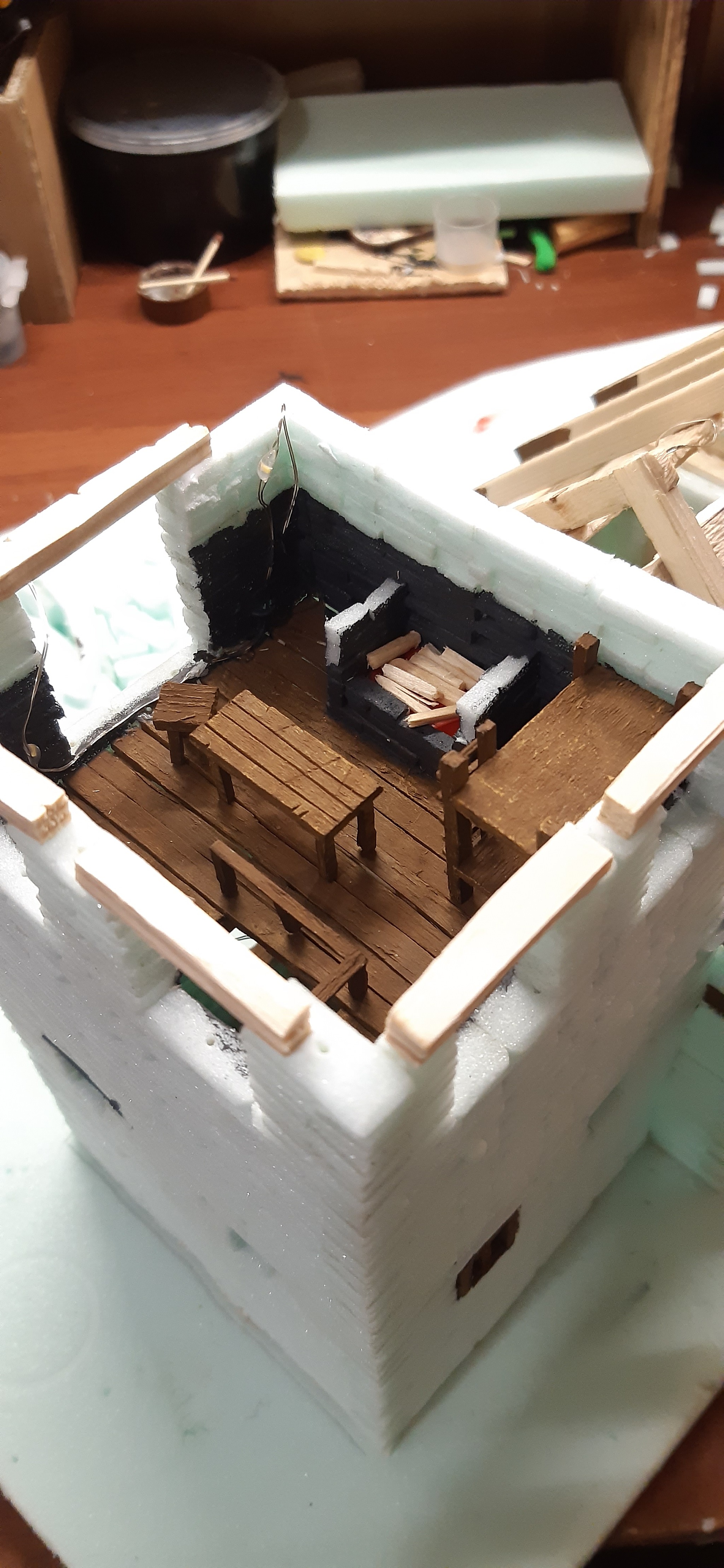 Успел ещё камин немного достроить и дровищек подкинуть.