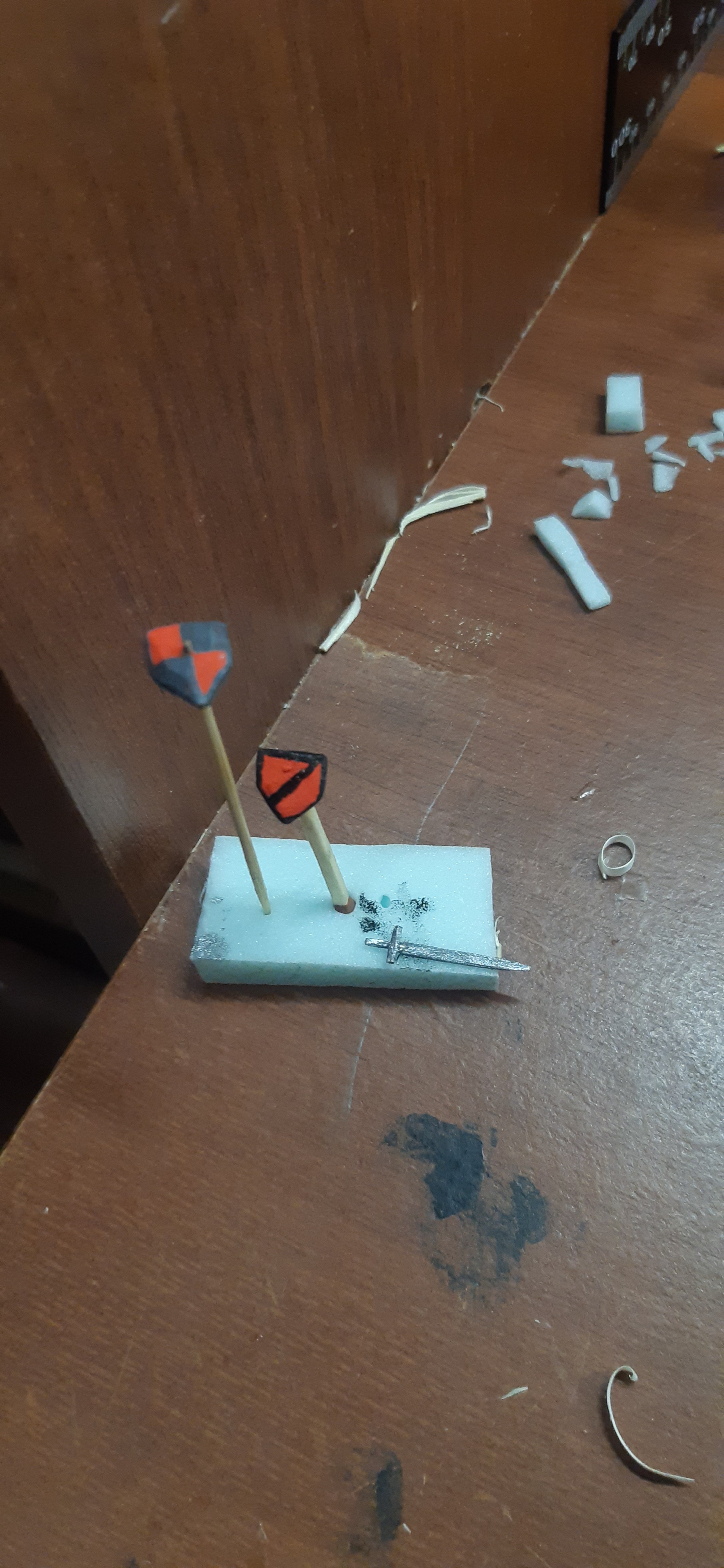 Ну как без стойки для оружия. Выковал меч и пару щитов.
