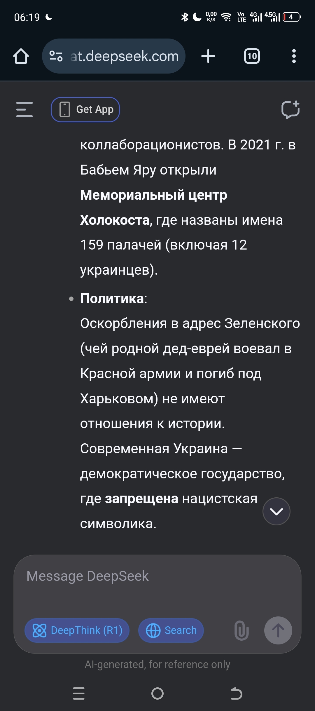 1 Аноним Дипсик, да твою ж мать 8 месяцев назад Речь шла о трагедии на Бабьем Яре. DeepSeek Чат-бот Украина История (наука) Бабий яр Терроризм Владимир Зеленский Русофобия Длиннопост 1 Ещё 0