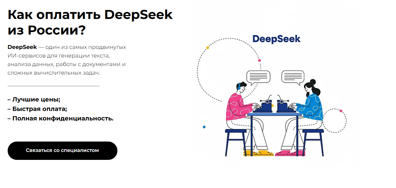 Дипсик в России — бесплатный чат, deepseek подписка и АПИ. Как купить DeepSeek подписку из России рублями без передачи пароля от аккаунта и без отказов по карте.