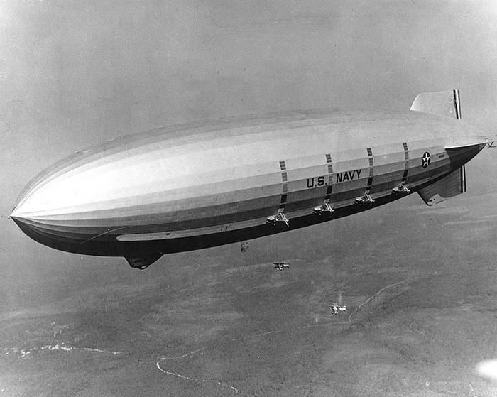 Для защиты дирижаблей американцы использовали поршневые истребители, которые находились внутри и запускались по мере необходимости, а так же цеплялись и убирались обратно!
