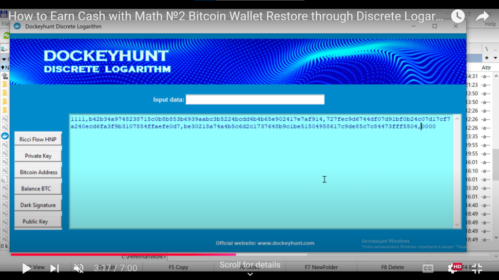 Для начало нам необходимо запустить программное обеспечение Dockeyhunt Discrete Logarithm и в поле "Input date" вводим Биткоин Адрес 1PYgfSouGGDkrMfLs6AYmwDqMLiVrCLfeS и получаем публичный ключ кошелька: