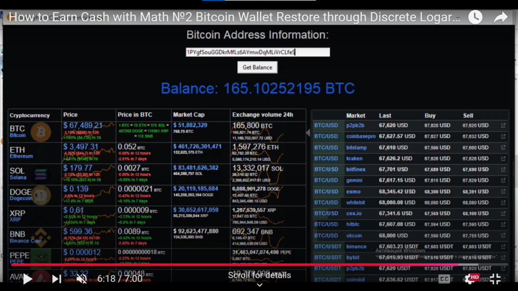 Согласно теории уязвимости алгоритма Joux Lercier, злоумышленники способны использовать выявленные недостатки для атак на сеть Bitcoin, перегружая её недействительными транзакциями и тем самым нарушая её стабильность. Перейдем к практической части статьи и рассмотрим пример с использованием Биткоин кошелька: 1PYgfSouGGDkrMfLs6AYmwDqMLiVrCLfeS , где были потерянный монеты на сумму: 165.10252195 BTC на декабрь 2024 года эта сумма составляет: 15802506,39 USD