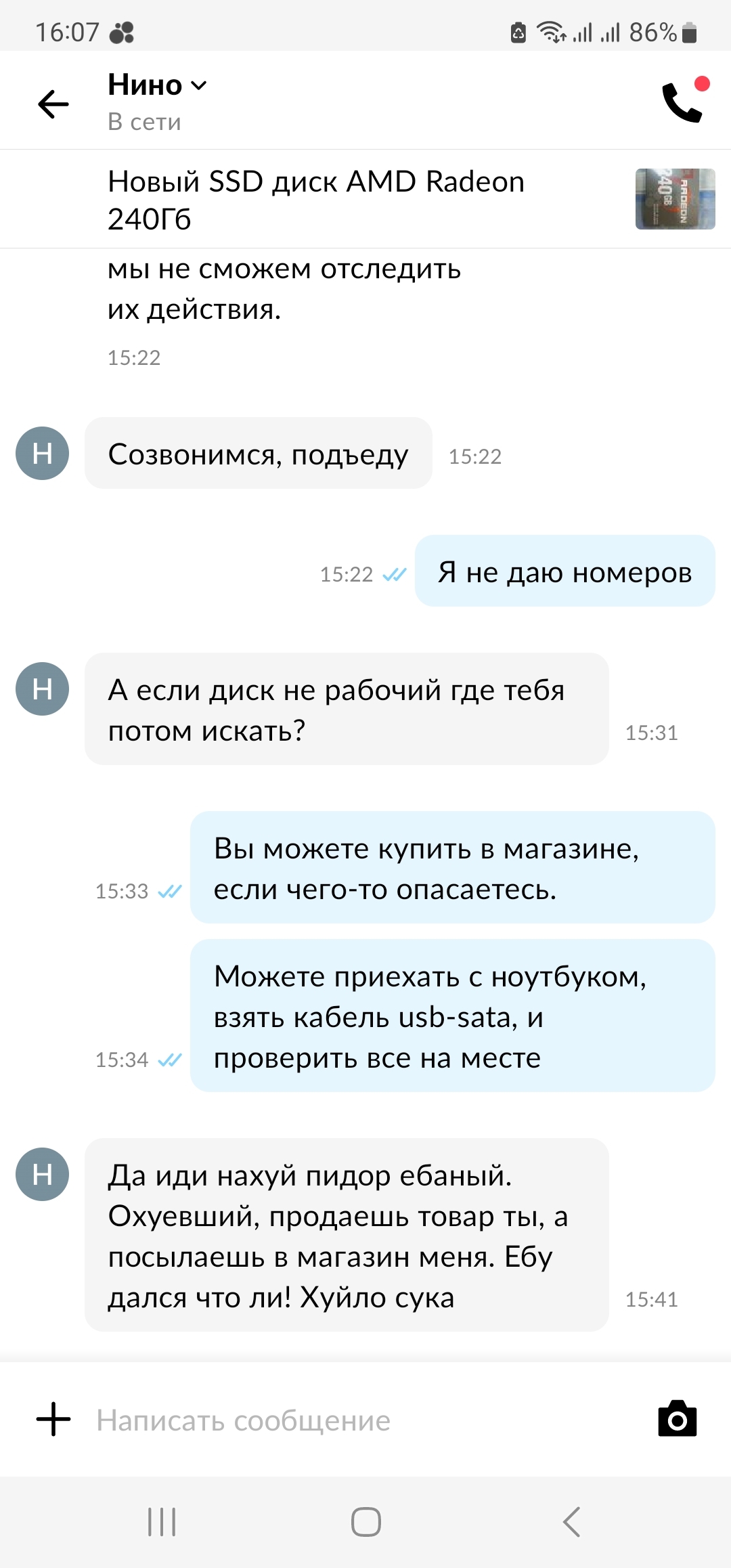 Чувак, который писал отзыв, в чате допускал еще и угрозы в мой адрес.