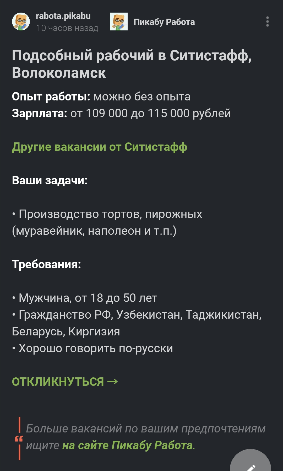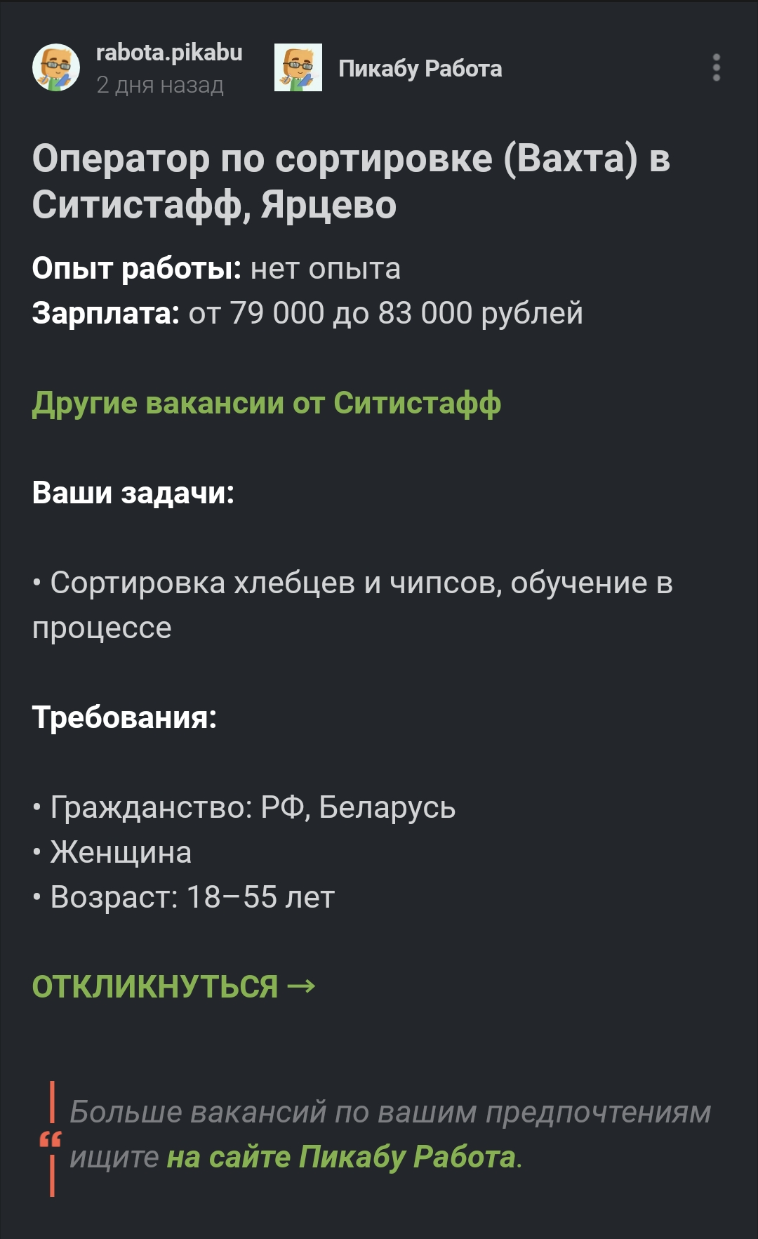 От одного и того же работодателя идут подряд посты с дискриминацией по гендерному признаку (нарушение ст. 3 и 64 ТК РФ, ч. 3 ст. 53 Закона о занятости).