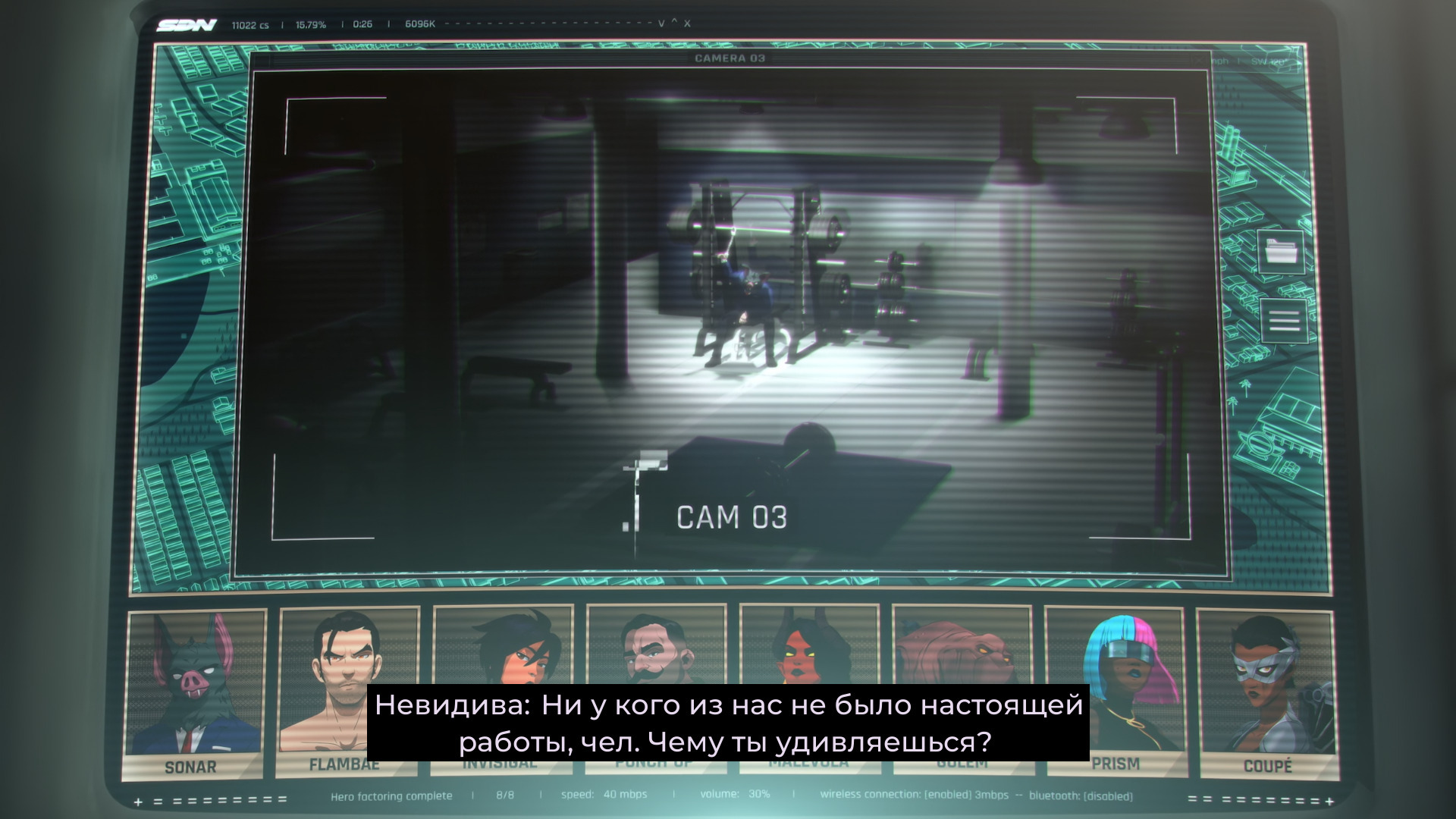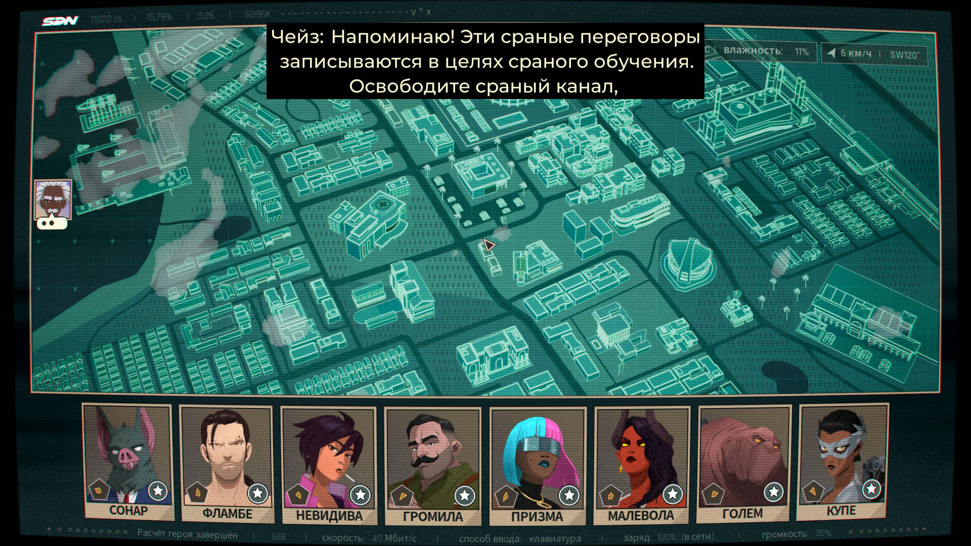 От начала до конца сценарий деградирует, а вот идеи для казуальной игры развиваются и этим радуют! Геймдизайнеры могли бы просто масштабировать комплект начальных элементов, чтобы повысить сложность, но каждый раз, в каждой новой главе была своя новинка, своя идея, неожиданность, внезапность, вызов! Мелочь, кроха, но всё равно приятно. Я даже скажу, что по сравнению с Dispatch взломы в Cyberpunk 2077 и Deus Ex банальны, примитивны и однообразны.