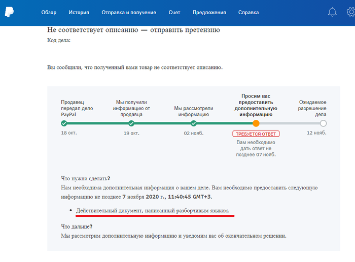 Пошел на сайт PayPal. Там открыл спор по поводу платежа. Прислал им сразу все документы, что есть и касаются этого дела. На что PayPal, ответил, это не то, пришлите "действительный документ" причем без уточнения какой именно документ их не устраивает.