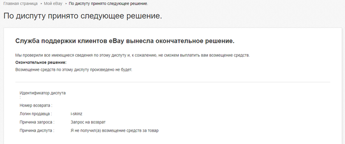 Побежал на сайт Ebay возвращать свои деньги, у них же защита покупателя, о которой на каждом углу написано.