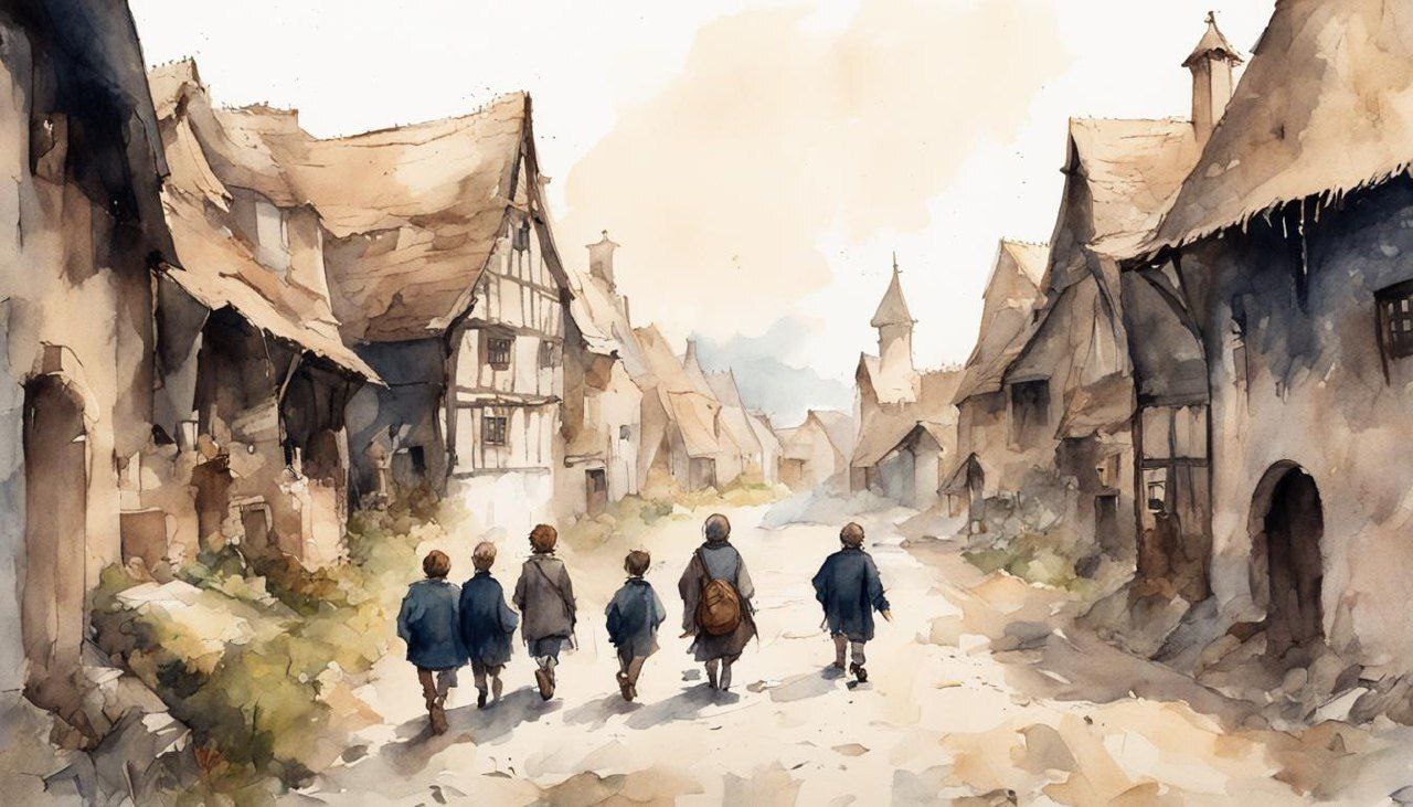 А жили мы в маленькой деревушке, народ которой взращивали культуры или разводили скот. Новые лица появлялись только когда сюда забредал, как мне потом объяснили, случайный сборщик податей. Вот как выглядела деревушка: хлипкие лачуги и крепкие новые дома были разбросаны по округе в случайном порядке. В центре деревни находился рынок, ближе к реке — лавка кузнеца. Церкви у нас не было, да и ходили слухи, что некоторые жители еще поклоняются старым богам, а вокруг деревни имелся забор из густого леса.