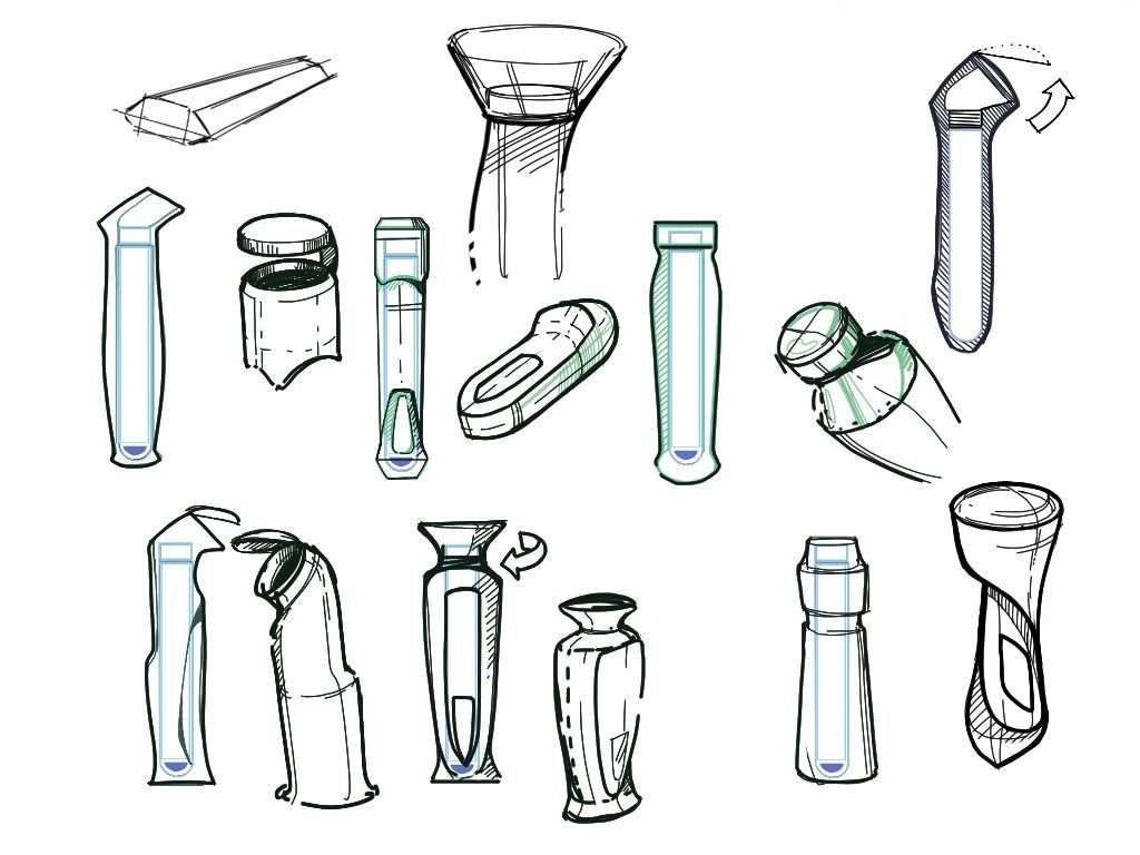 Было проведено дизайн-исследование процесса использования контейнера, определены оптимальные размеры ёмкости и принцип её открывания и закручивания после использования. Процесс не самый приятный, поэтому всё должно быть элегантно и без слюней.