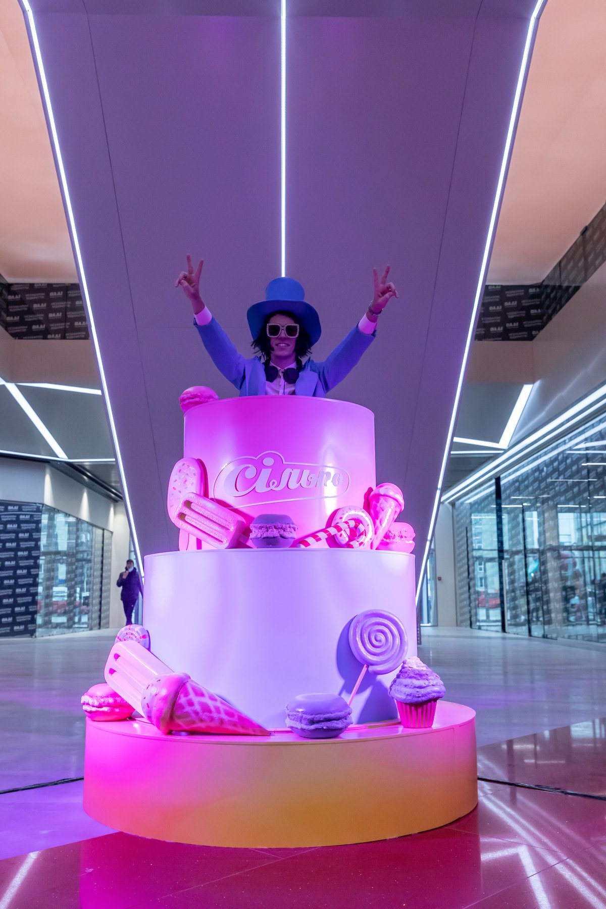 Зефирки, карамельки, рожки с мороженым, пончики, единороги на радуге с пастилы и сладкая вата - и это только декор! А еще - желейные мишки и колесо с пралине. Вилли Вонку точно понравилось бы.