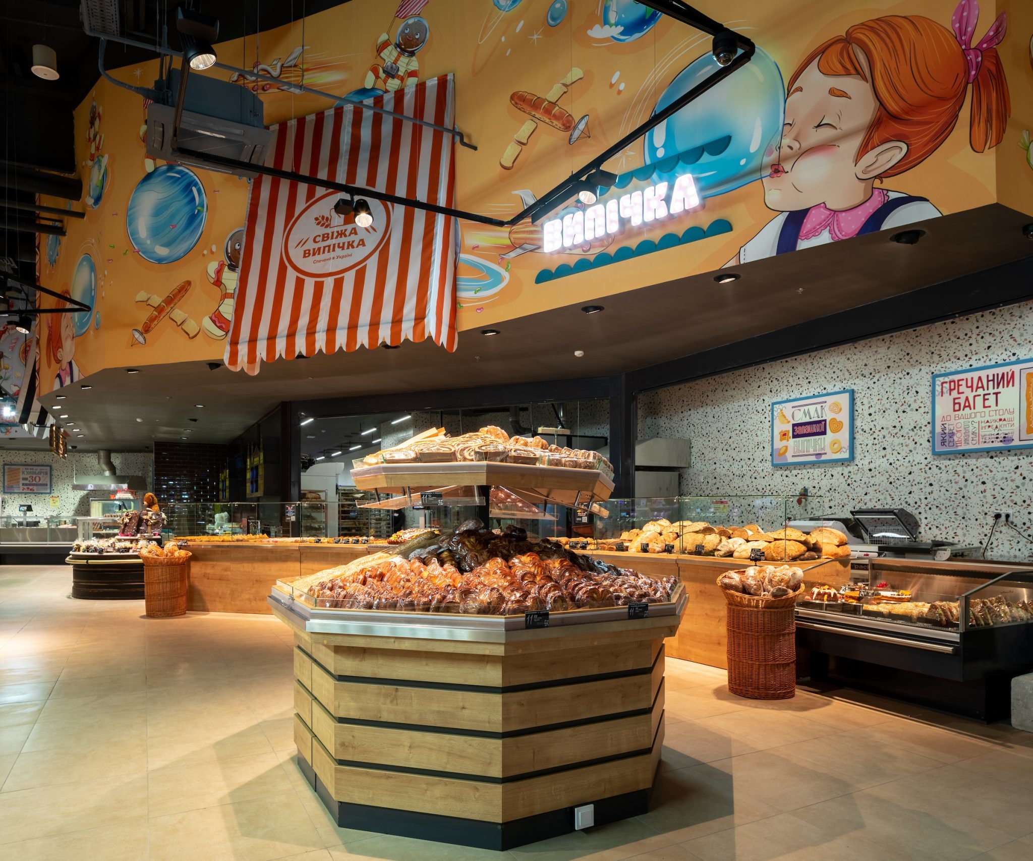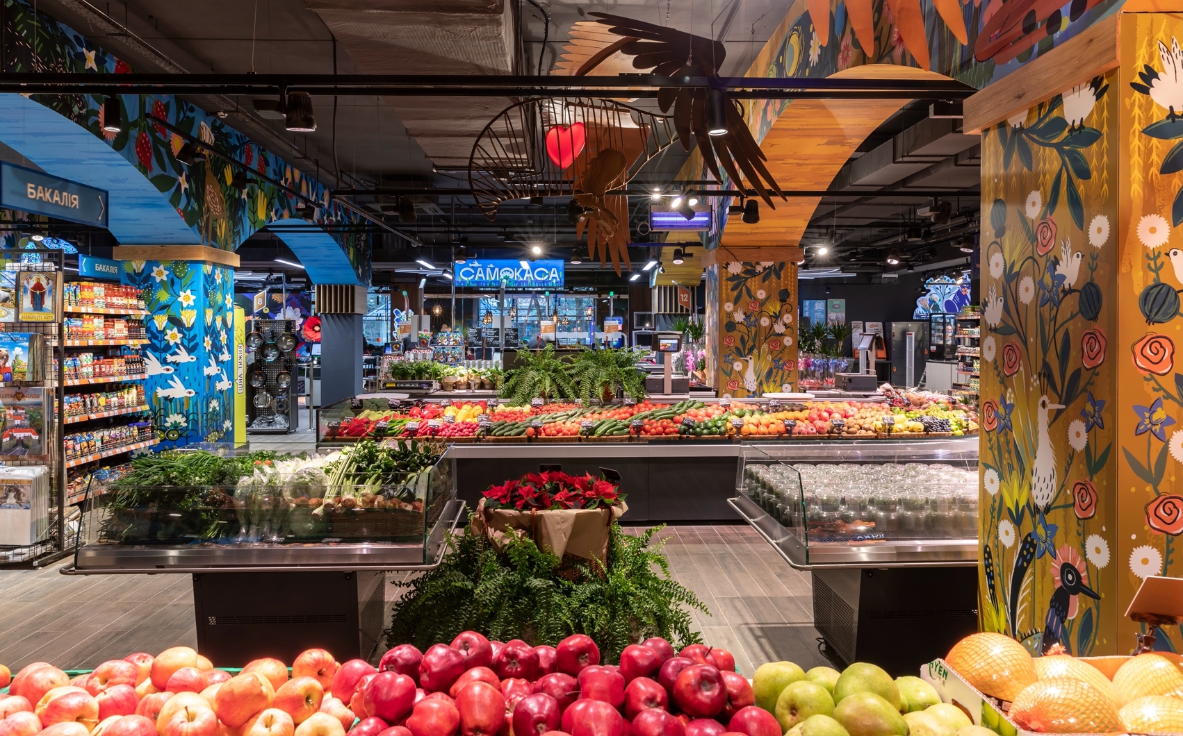Дизайн «Сильпо» вобрал в себя цвета степей и контрастные тени южного солнца. Вдохновением для его появления стало творчество художницы Полины Райко из Херсона. Узоры на стенах по мотивам южной флоры расписаны вручную. Инсталляции в витринах создают собственную вселенную удивительных растений и животных.