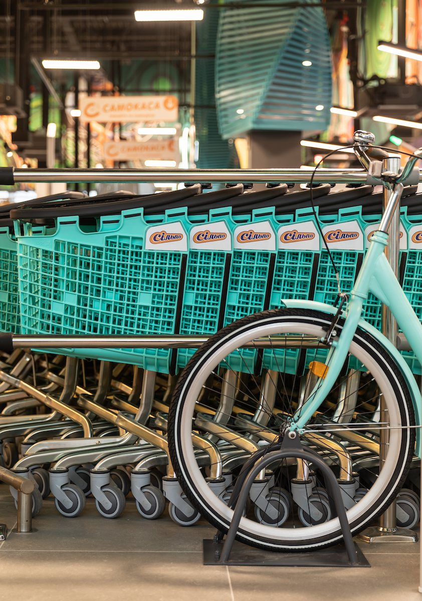 7 «зеленых» решений нового «Сильпо»: геотермальное отопление и кондиционирование, коляски из переработанных рыболовных сетей, солнечная электростанция на крыше, холодильные установки без фреона, заправка для электромобилей, наружное освещение на солнечной энергии и станция приема вторсырья.