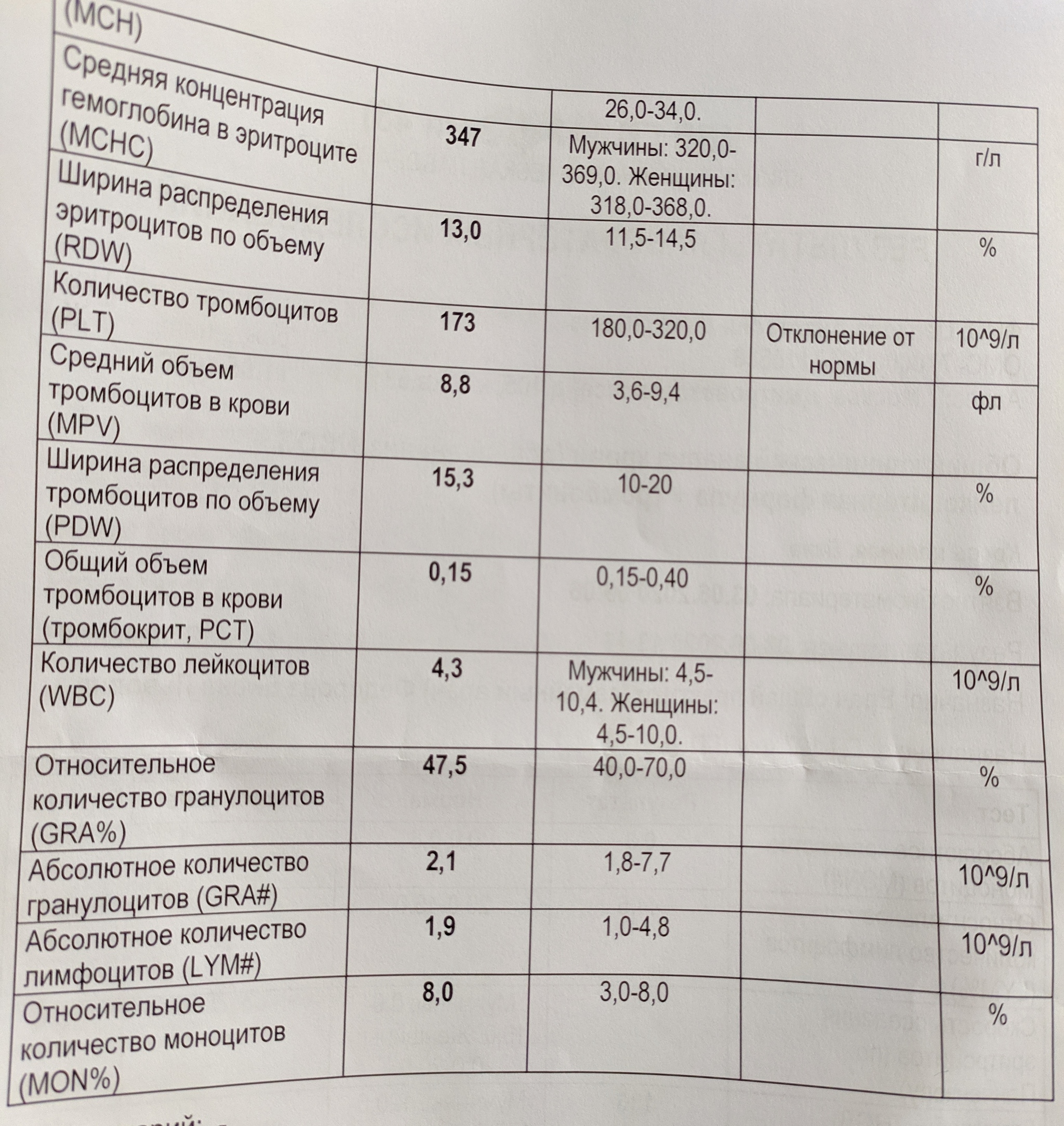 И вот наступило 5 июня, то бишь сегодня. Пришел мой анализ крови от 3 числа, на котором терапевт не видит никаких тревожных отклонений. А я, к примеру, вижу, что тот, кто заполнял бумажку, не заметил и не отметил пониженное число лейкоцитов, что бы это ни значило: