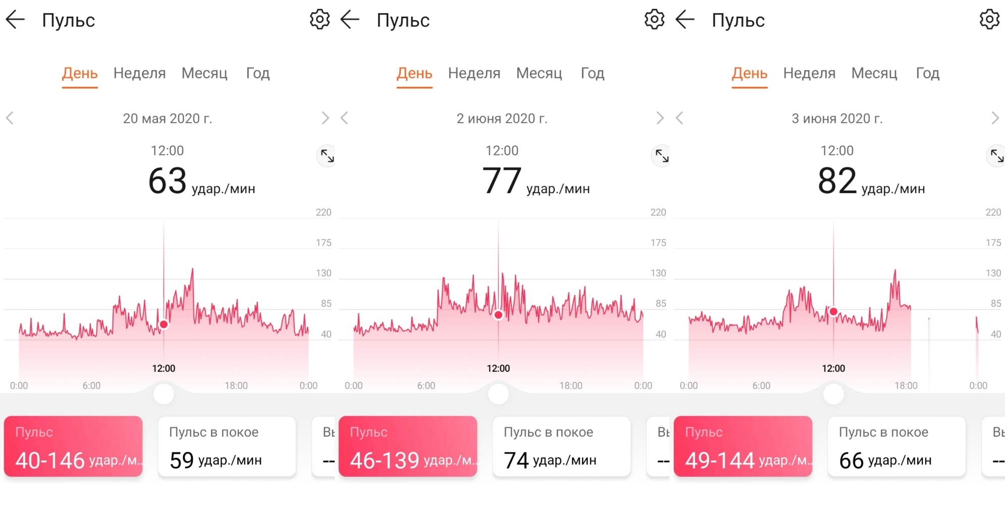 Для сравнения показатели от 20 мая, когда ещё ничего не предвещало, и от 2 и 3 июня, когда что-то уже предвещало.