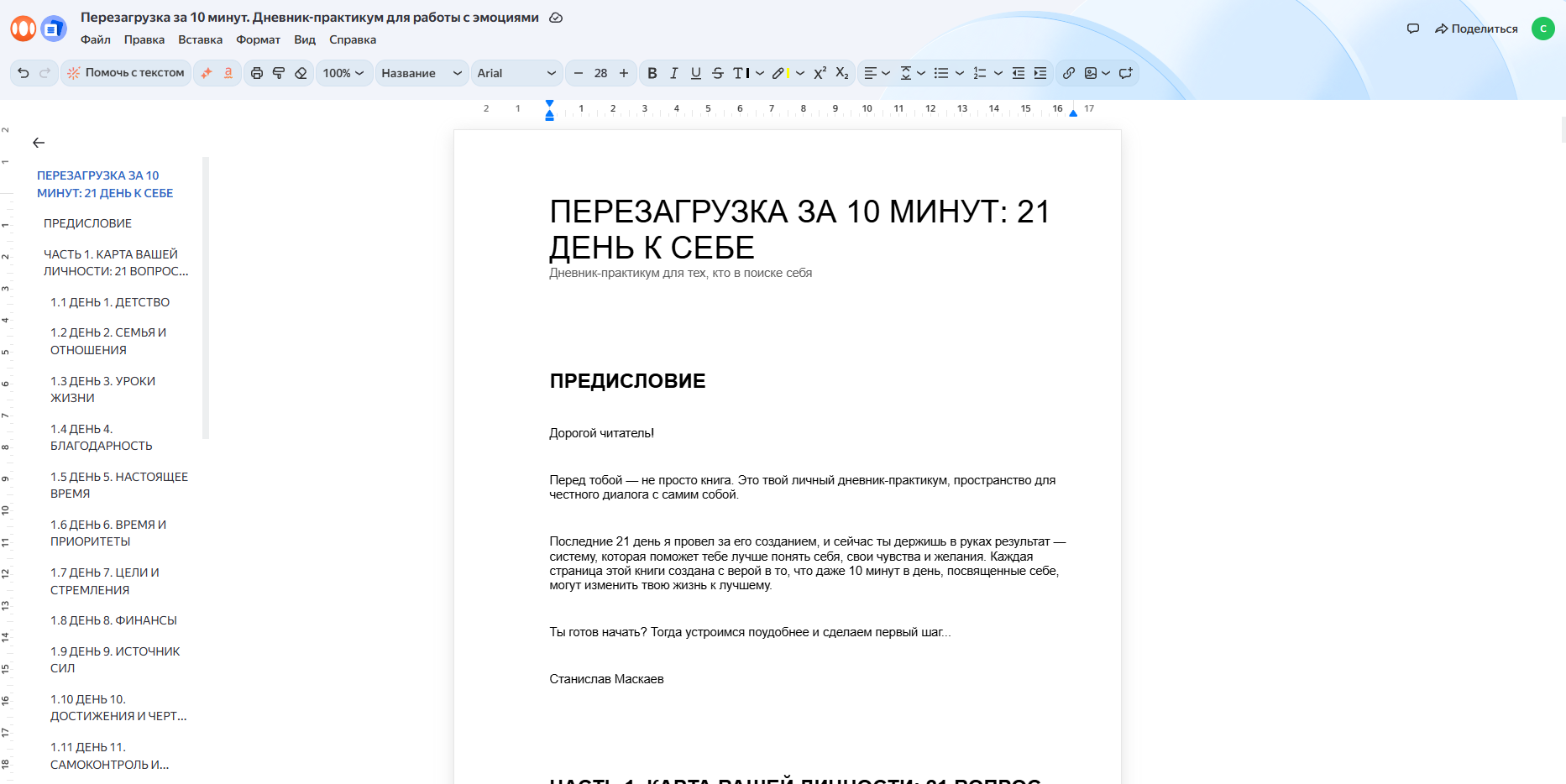 Привет! Я наконец-то завершил черновик своей очередной книги-практикума «Перезагрузка за 10 минут». Это 21-дневный курс самопознания через вопросы и авторские медитации.