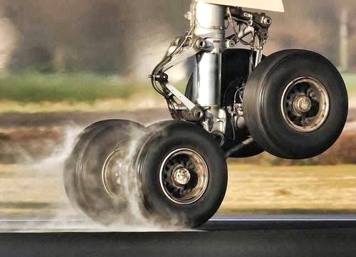 После касания колёсами полосы выпускаются все щитки на крыле. Подъемная сила резко падает и самолет прижимается к земле, обеспечивается лучшее сцепление колес с полосой