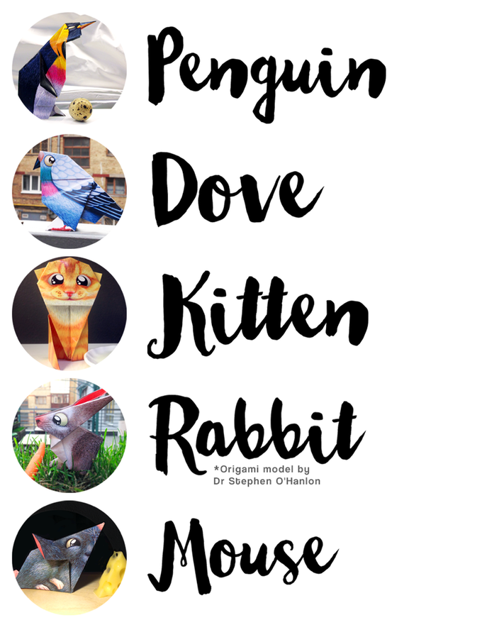 ORRRI – набор художественных оригами, который объединяет различные модели животных в интерактивной легенде. Каждая ORRRI коробка будет включать в себя 10 моделей оригами с рельефными линиями сгиба, 10 дополнительных экземпляров, 10 шаблонов раскраски и артбук. При сборе $10,000 и более будут разблокированы новые модели.