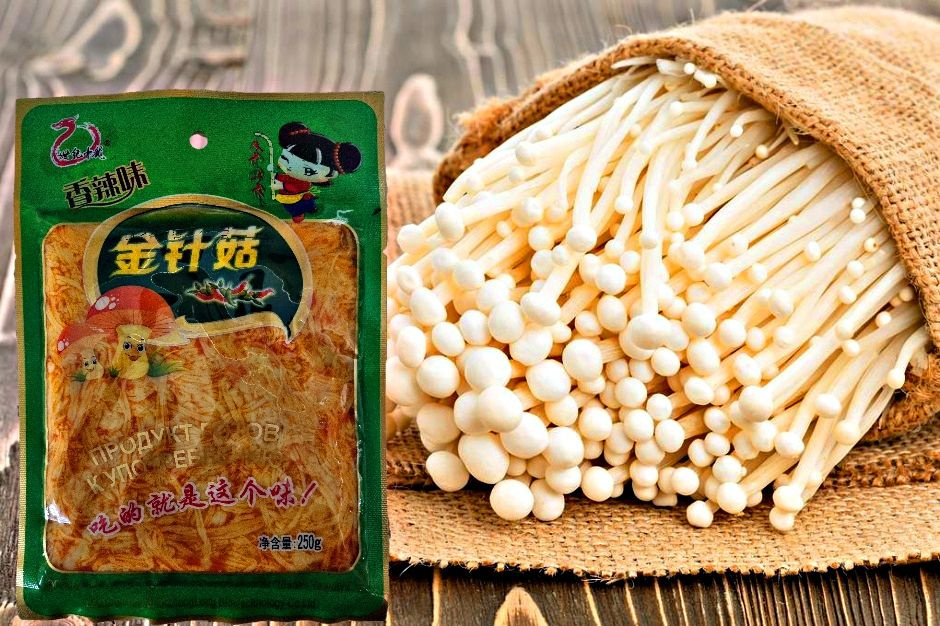 Эноки — это гриб энокитаке, или зимний опёнок. В странах Азии он считается изысканным деликатесом — у него неяркий, но приятный, слегка сладковатый вкус с очень тонким грибным ароматом.