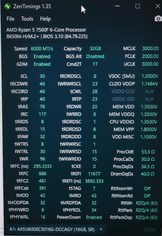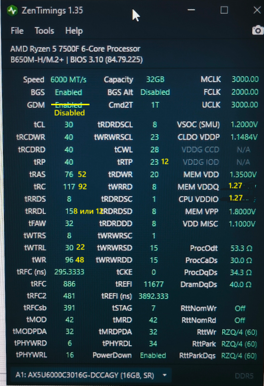 Прога также считывает из БИОС все выставленные и просчитанные тайминги.