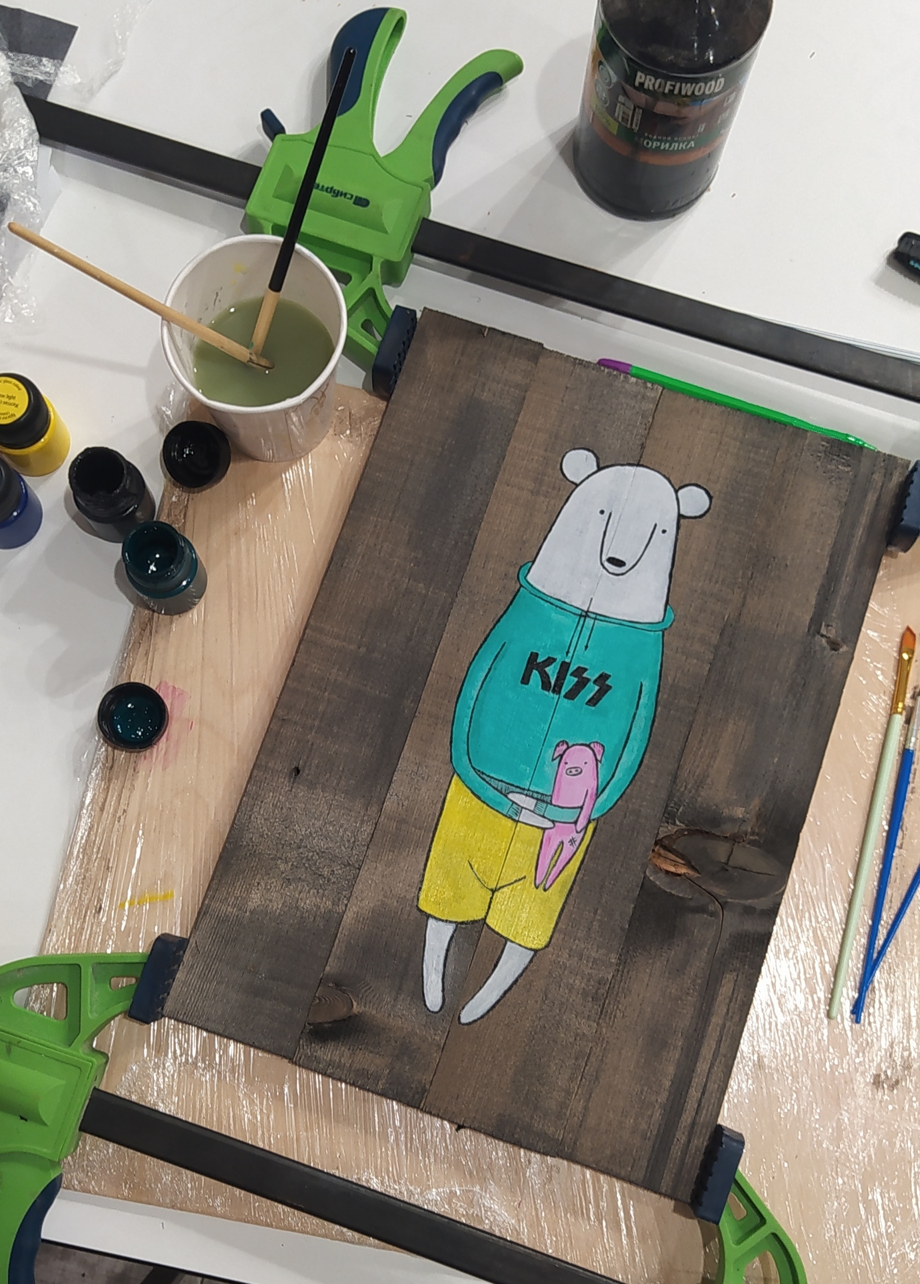 И захотелось для сына сделать что-нибудь на стену. Заморила их, нарисовала и раскрасила. Вот результат. По мне так чего-то не хватает, думаю чем дополнить, или так уже оставить и под лак))