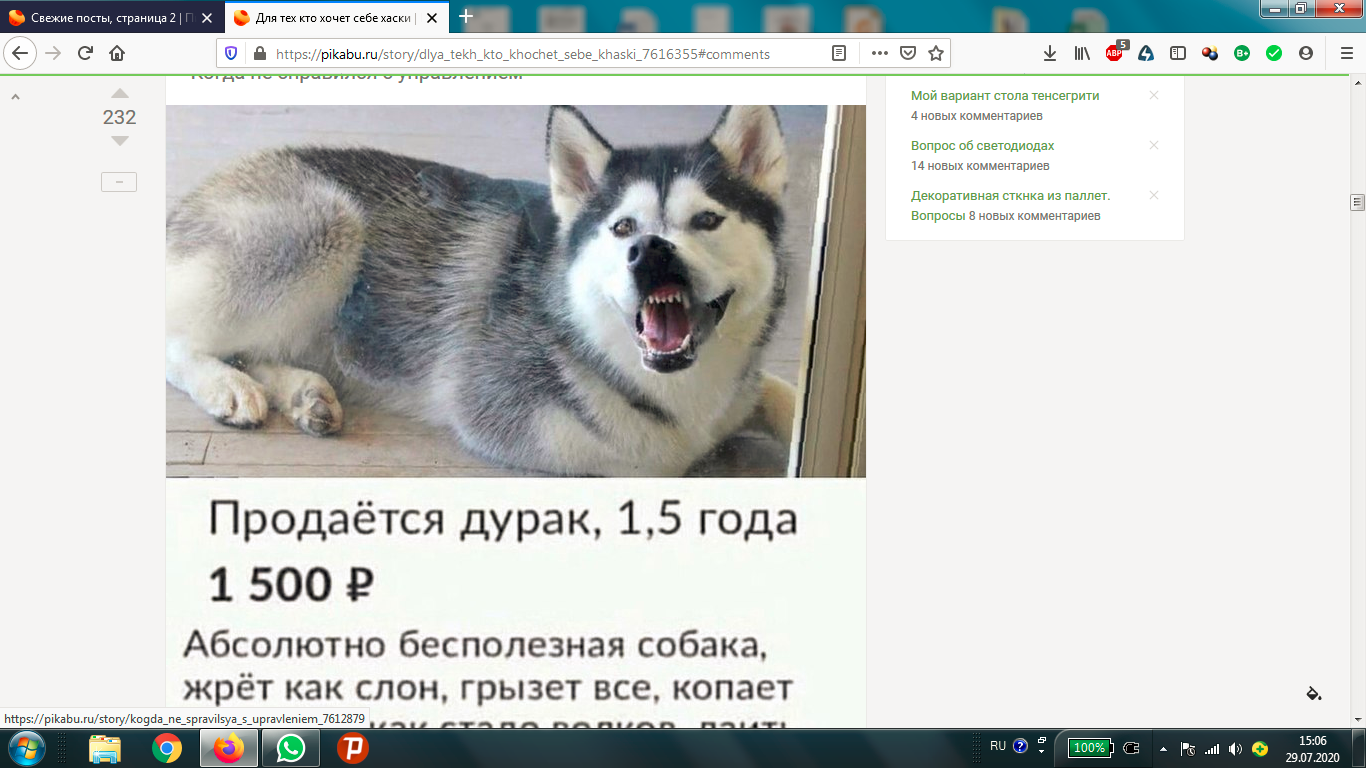 Сорвал спину в очередной раз, одолжите собакена на неделю? Соберу шерсти на "собачий пояс" и верну :) честно честно :)