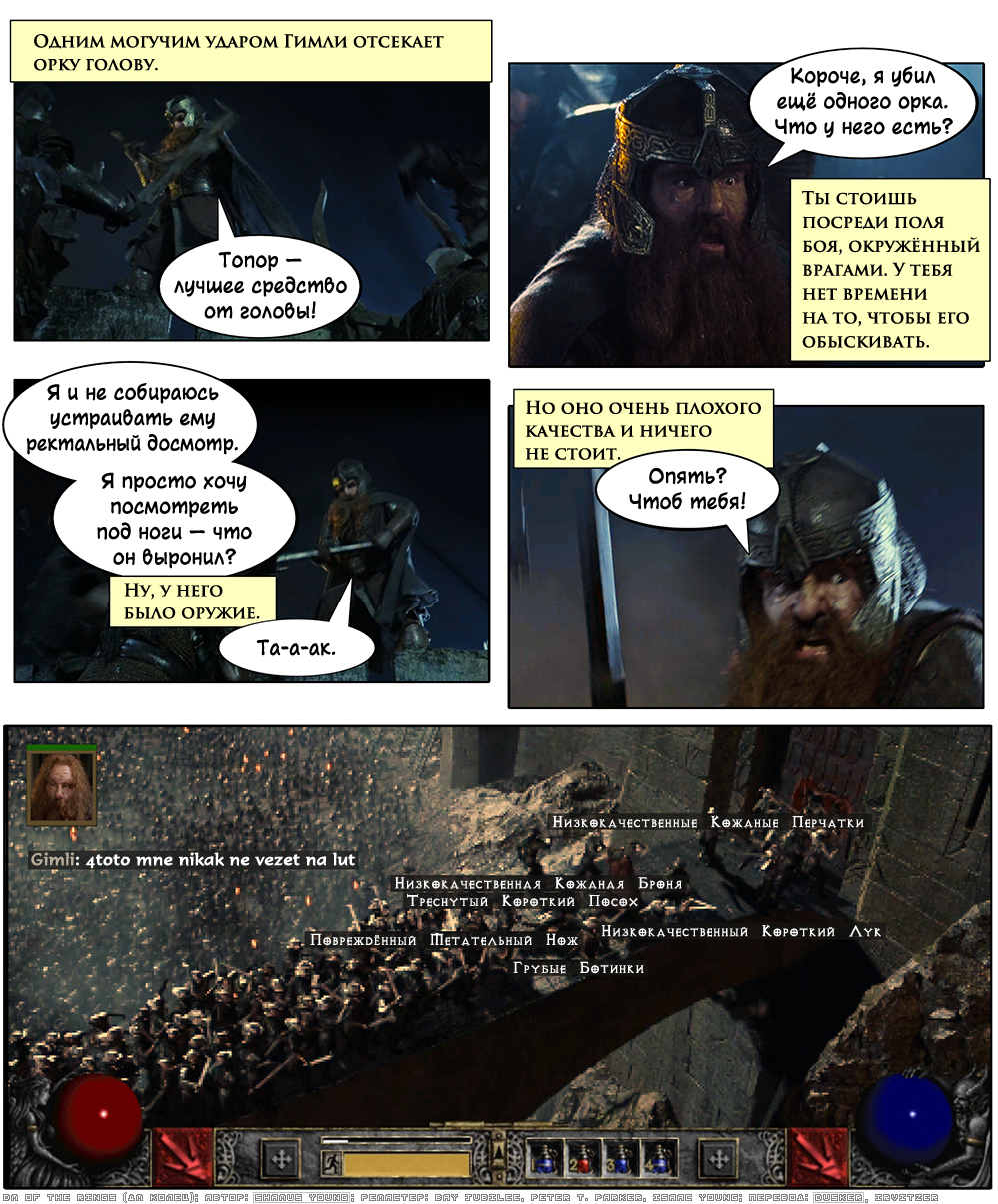 Примечание переводчика: последний фрейм имитирует скриншот из игры «Diablo II», Action/RPG (сетевой режим).