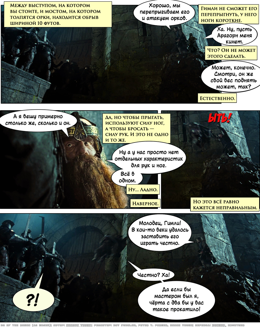 Примечание переводчика: автор изначально не планировал использовать данную сцену в комиксе, поэтому этот выпуск вышел после тех, где Гимли и Арагорн сражаются с орками на мосту.