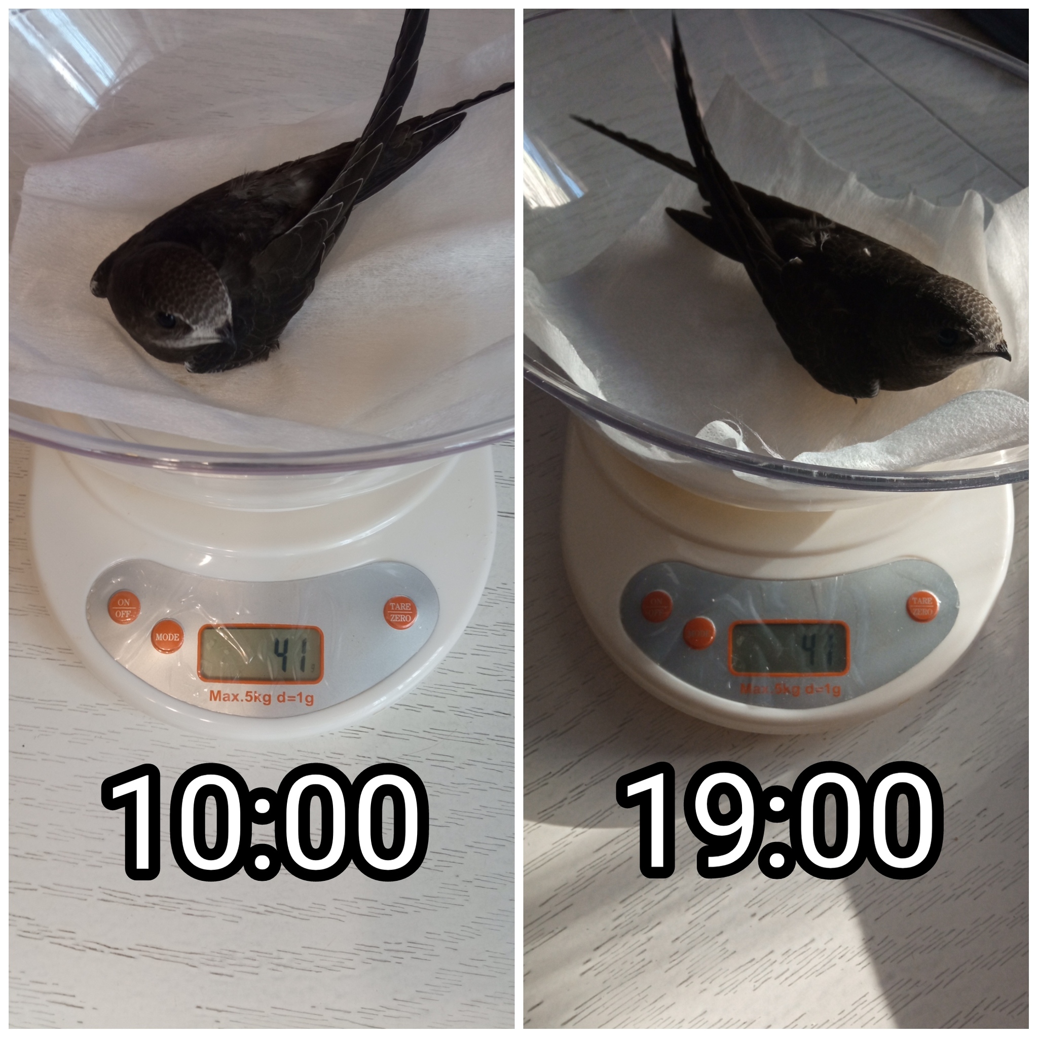 Стриж за два дня подрос немного, а вот с весом похоже он достиг плато: