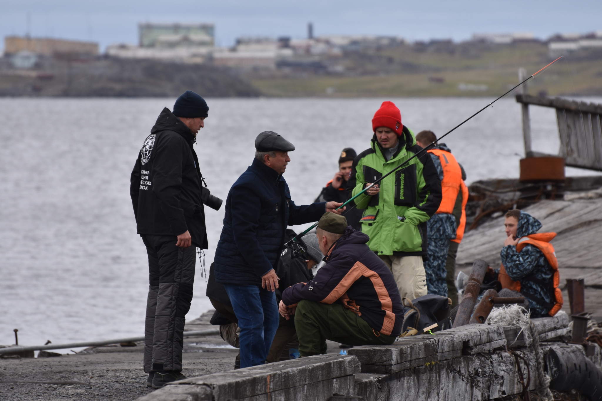 Вернулись к пирсу, смотрим, а там мужики рыбу ловят! Оказывается пара белух загнали в бухту кучу рыбы. На счастье, у моего коллеги Павла, оказался с собой спиннинг.