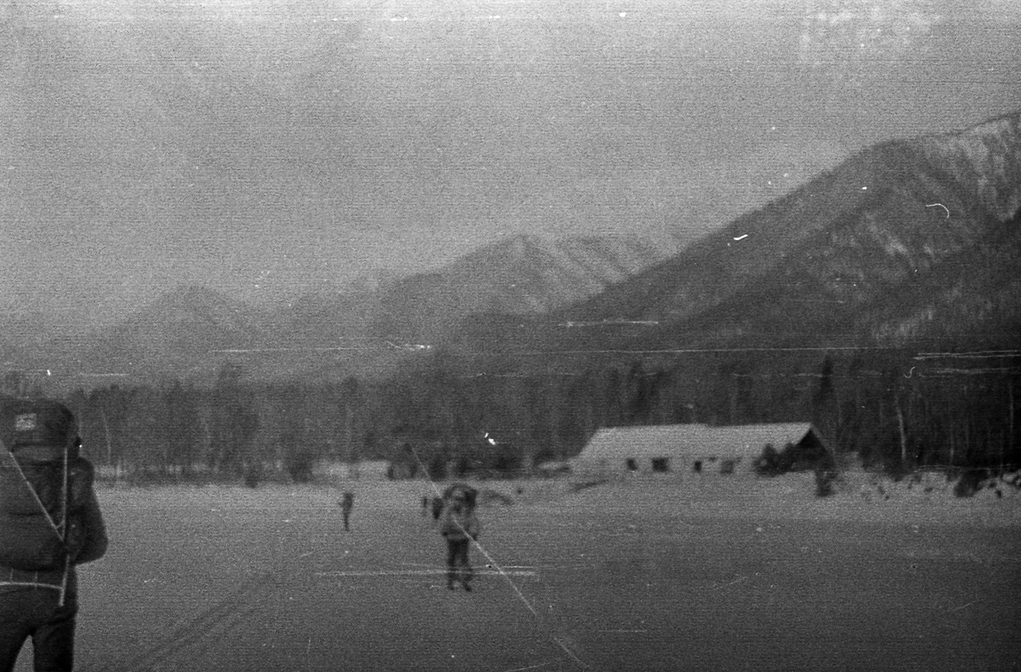 До гор, казалось, рукой подать, но шли мы до них весь день. Сначала бодро и весело, а потом шутки и смех постепенно утихли, зато рюкзаки с каждым часом становились всё тяжелее и тяжелее. Да и на лыжах по льду идти совсем не так весело, как может показаться, поскольку они, ну то есть лыжи, имеют гадкое свойство на льду разъезжаться, и приходиться тратить лишние усилия на то, чтобы не свалиться в самый неподходящий момент. Хорошо только бывалым туристам – Александру Васильевичу да Вадику Каткову – у них лыжи «Бескиды» с металлическим кантом; таким лёд не страшен.