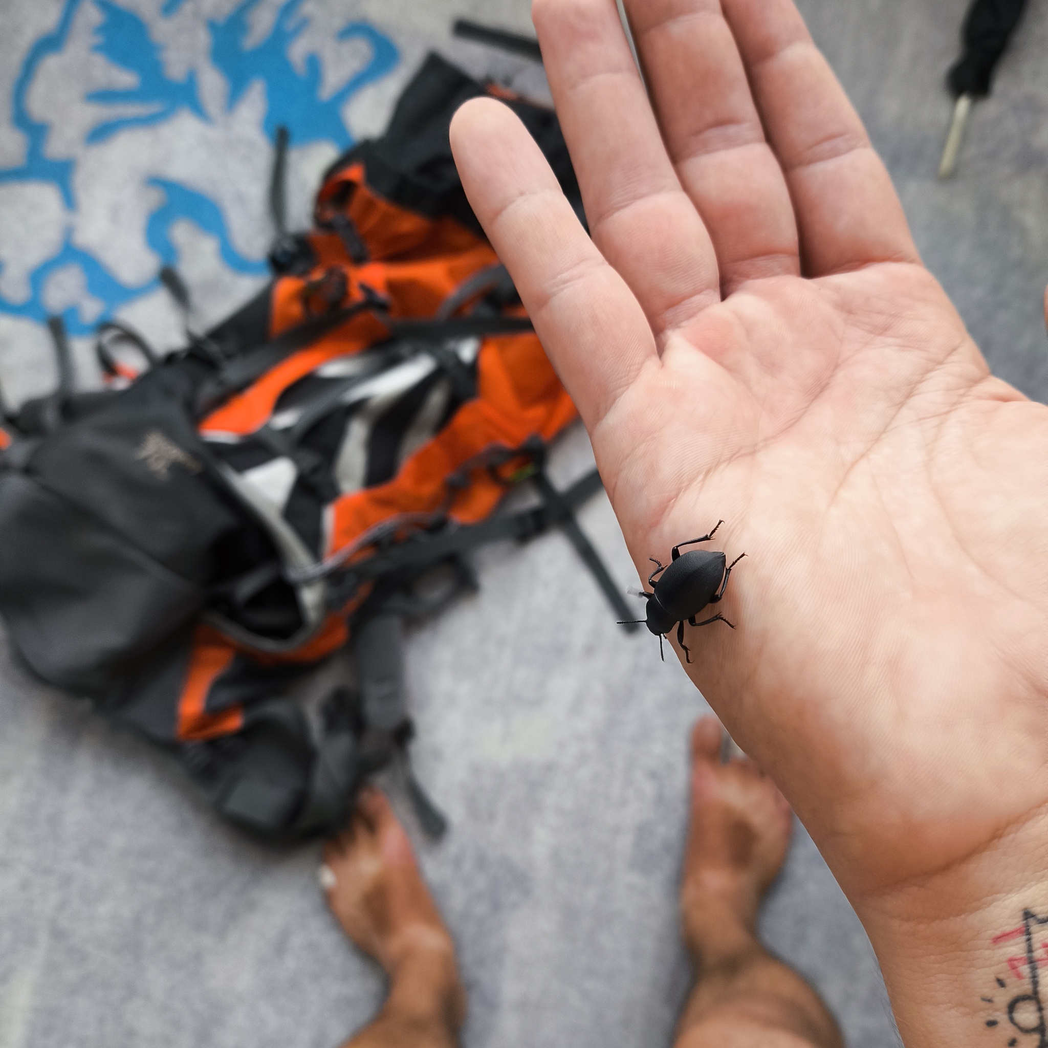 При распаковке и вытряхивании рюкзака обнаружил жука, что ехал со мной с самой Гоби. Нелегал, получается! Выпустил его на улице. Ему будет тяжело, но шанс есть.