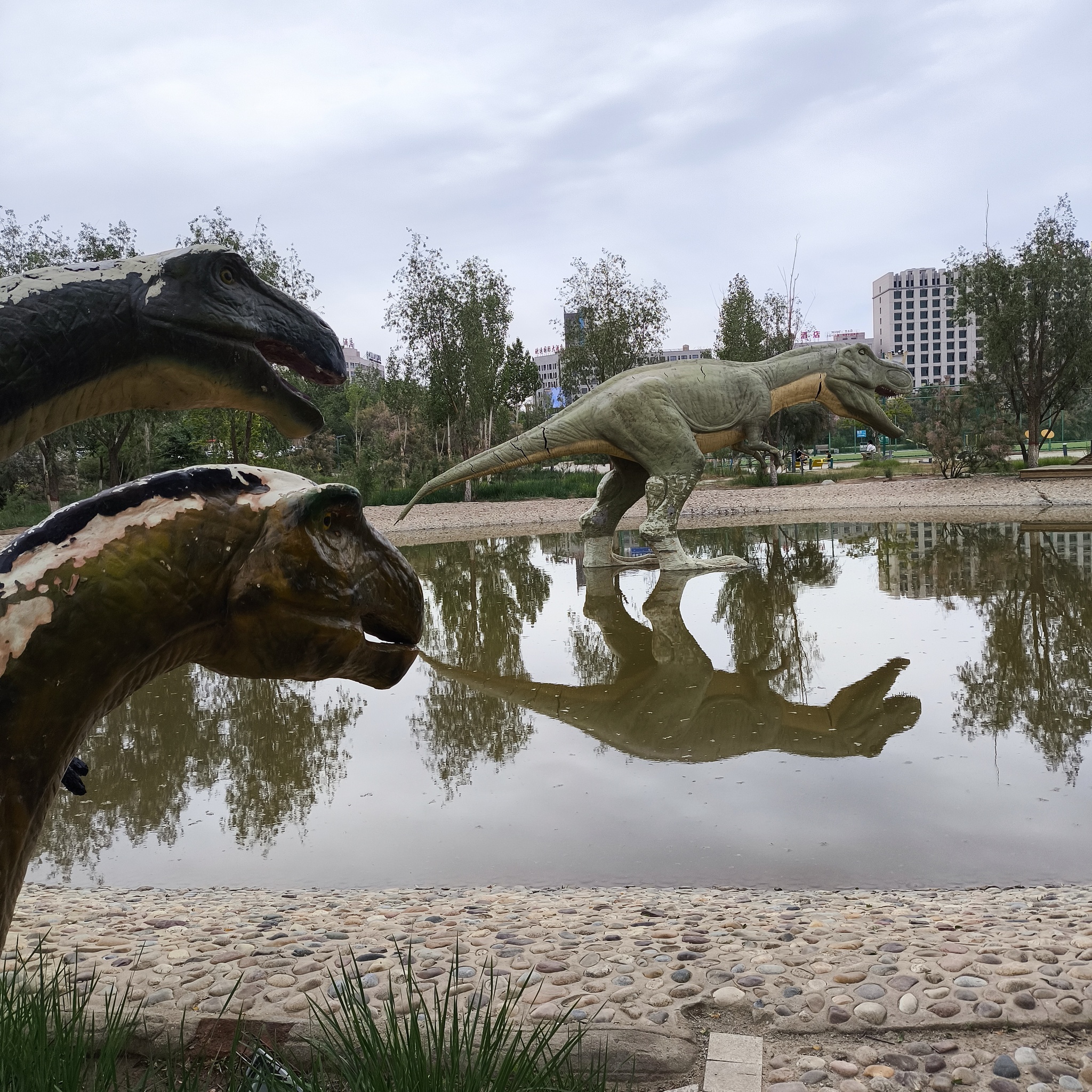Посетил городской парк "Дом динозавров". Бизнес-центр и дороги - это хорошо, но при должном вложении средств можно построить в считанные месяцы, но парк посреди пустыни - совсем другое. Он оказался ещё одним оазисом с высокими зелёными деревьями. Тенью.