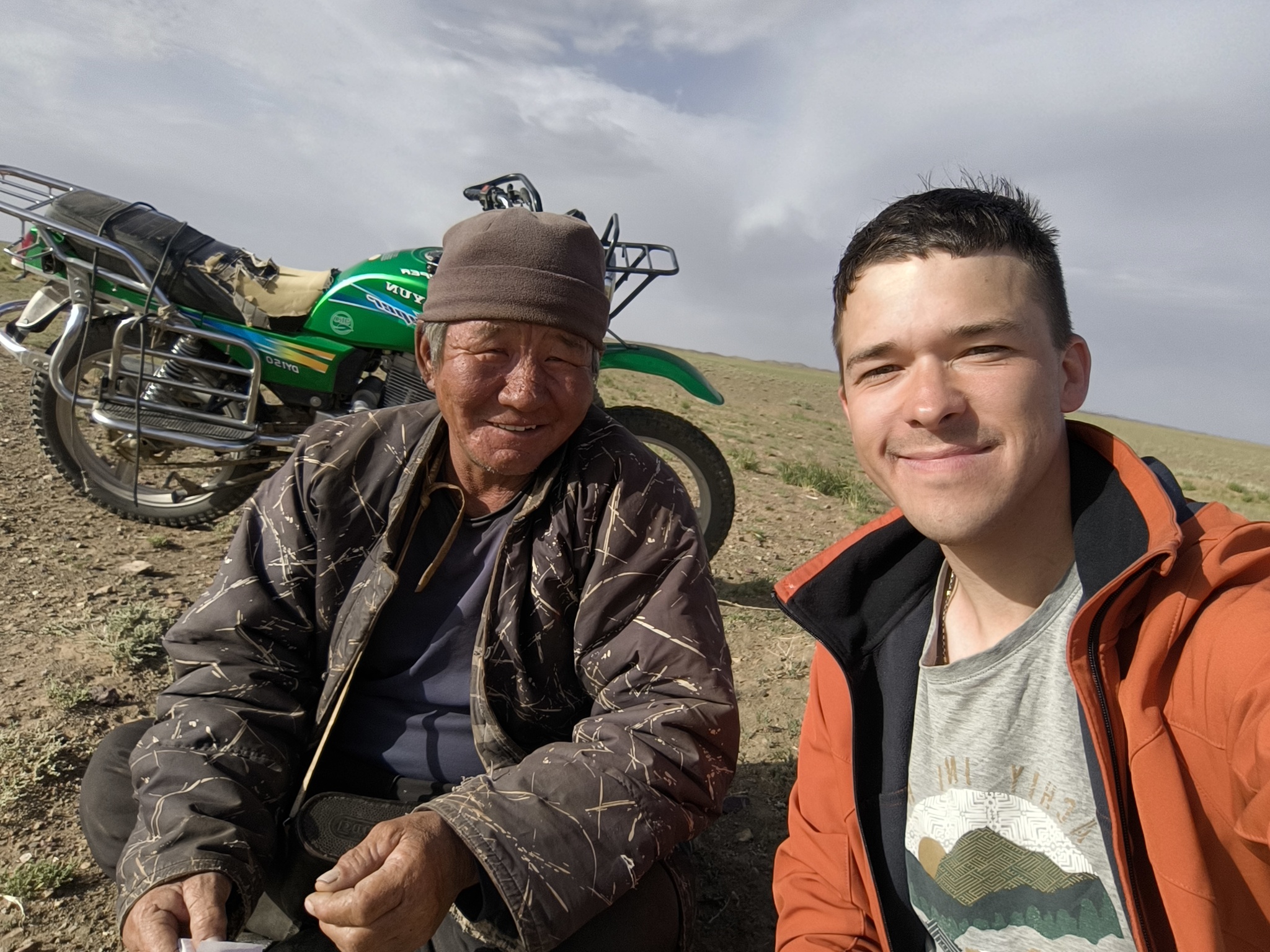 Так я познакомился с Батыром, монголом лет 50. Он деловито сел неподалеку и достал баночку с табаком. Я решил последовать примеру и сел рядом на камни. Общались мы больше рисуя на песке цифры - у кого сколько градусов зимой и летом, сколько километров до дома мне. Зимой в Гоби -20-30, летом 20-40, в целом, все как и у нас в Сибири, только ещё сухо. Не так ощутимо.