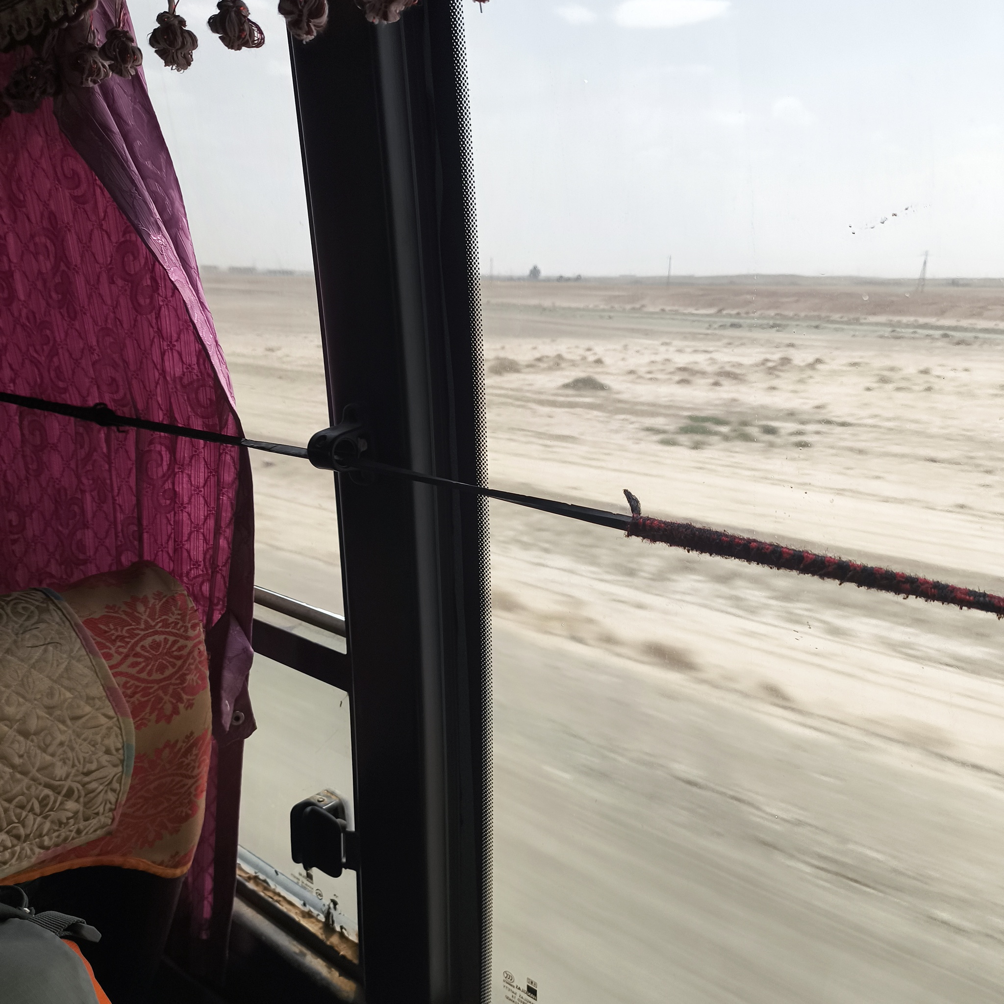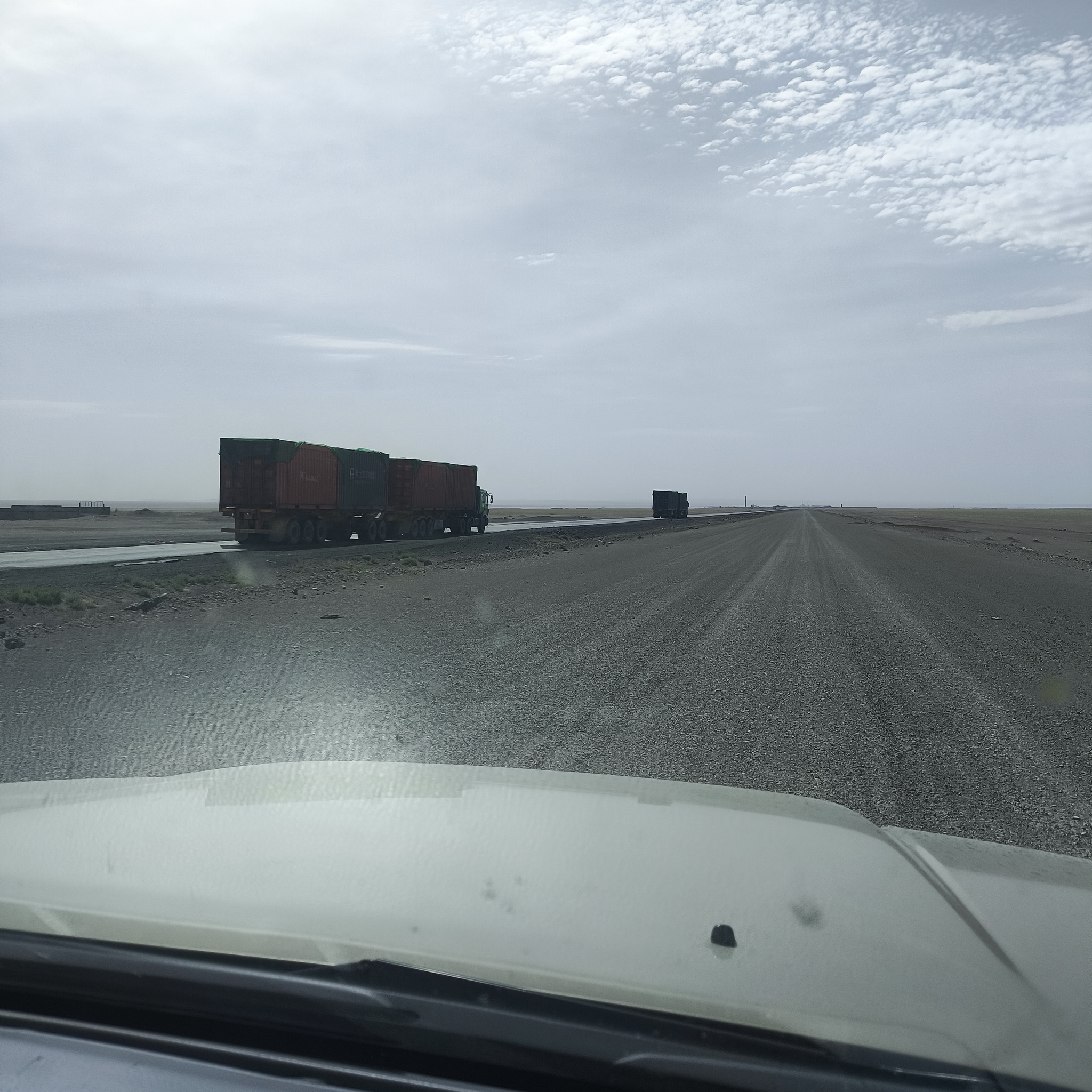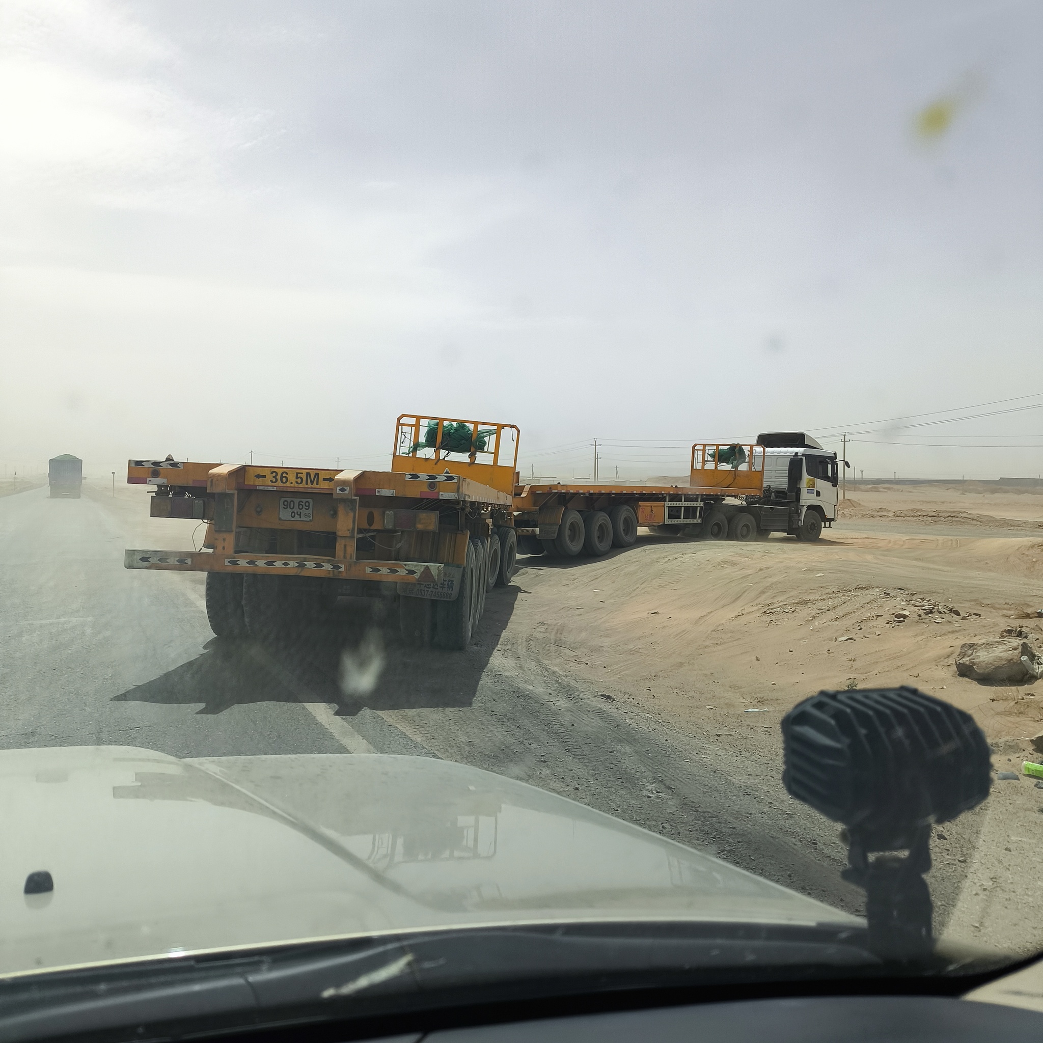 Мы тащимся в веренице тягачей, что всеми силами пытаются быстрее добраться до пункта назначения, совершают опасные обгоны... И я ловлю себя на мысли, что единственная ассоциация, что приходит в голову - это вселенная фильма Безумный Макс, вот она "Дорога ярости". Песок и машины.
