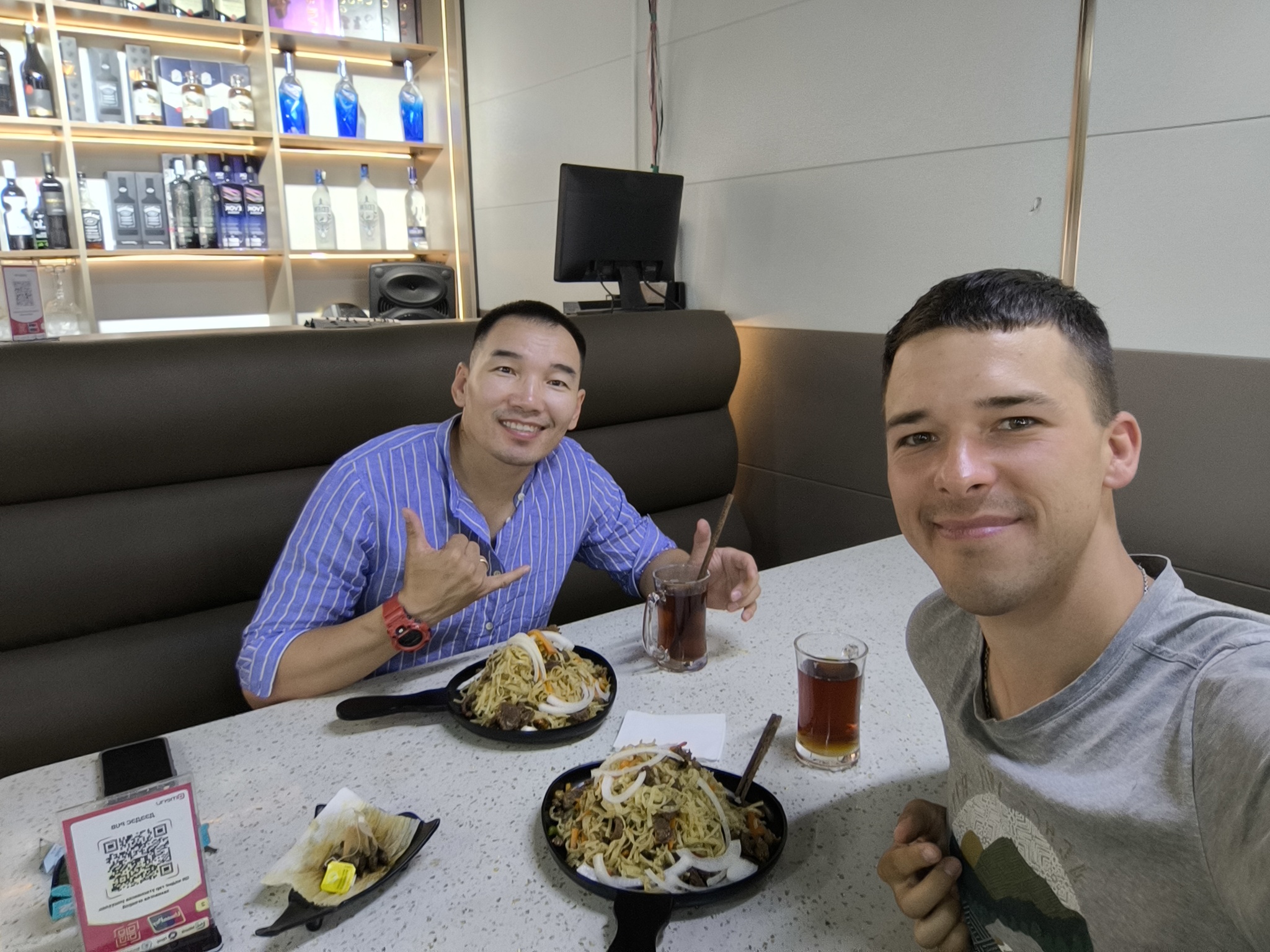 Доехав до границы, Бьямба пригласил пообедать (сам он ехал с Улан-Батора больше 10 часов) и угостил каким-то вкуснейшим блюдом. Порции, кстати, в Монголии огромные, но и цены выше.