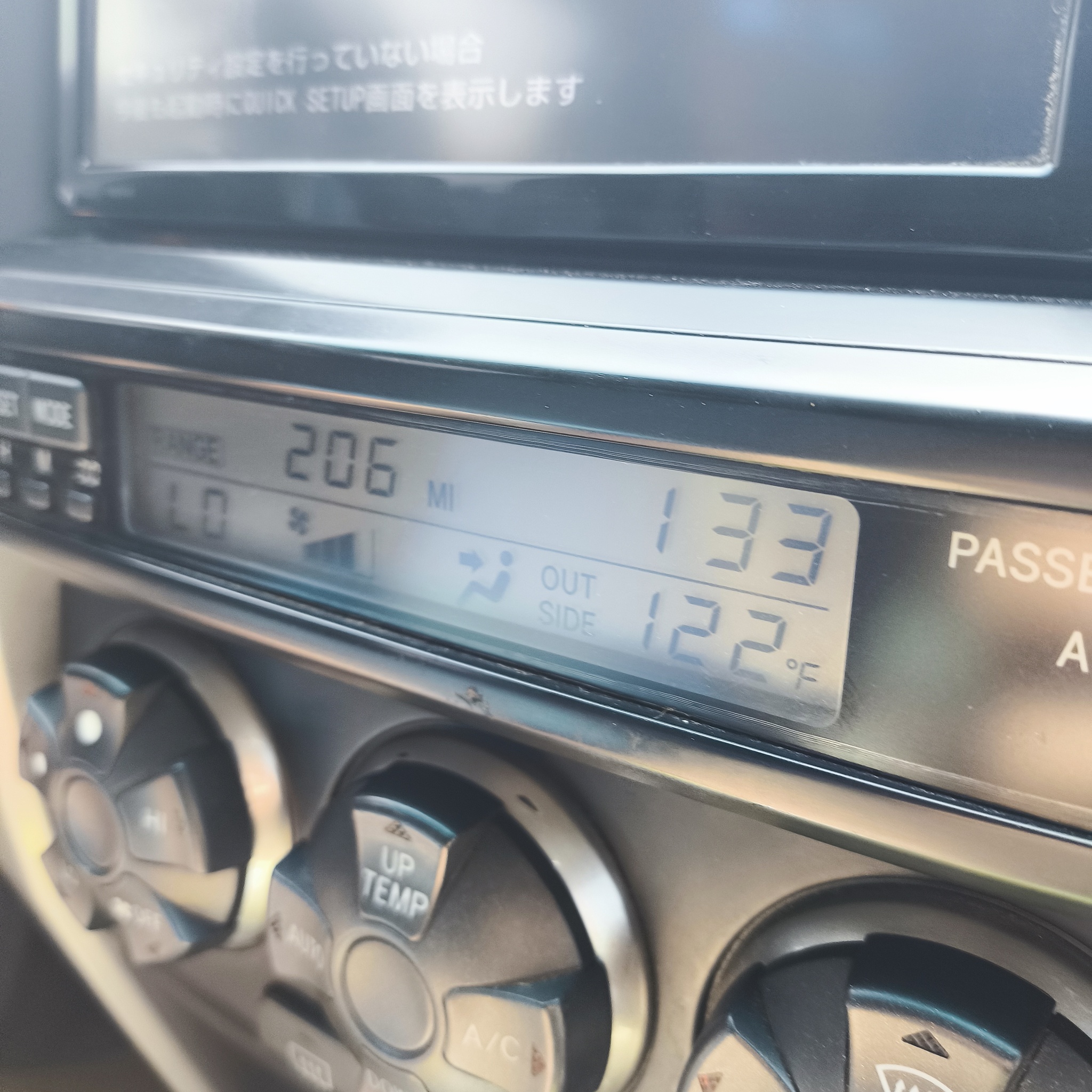 Чуть не забыл. Если не выходить из машины с кондиционером, то может показаться, что на улице обычные степи, но стоит открыть окно или дверь, как тебя буквально сбивает горячим воздухом. Больше 100 градусов по Фаренгейту, значит не меньше 40 по Цельсию. Жарко.