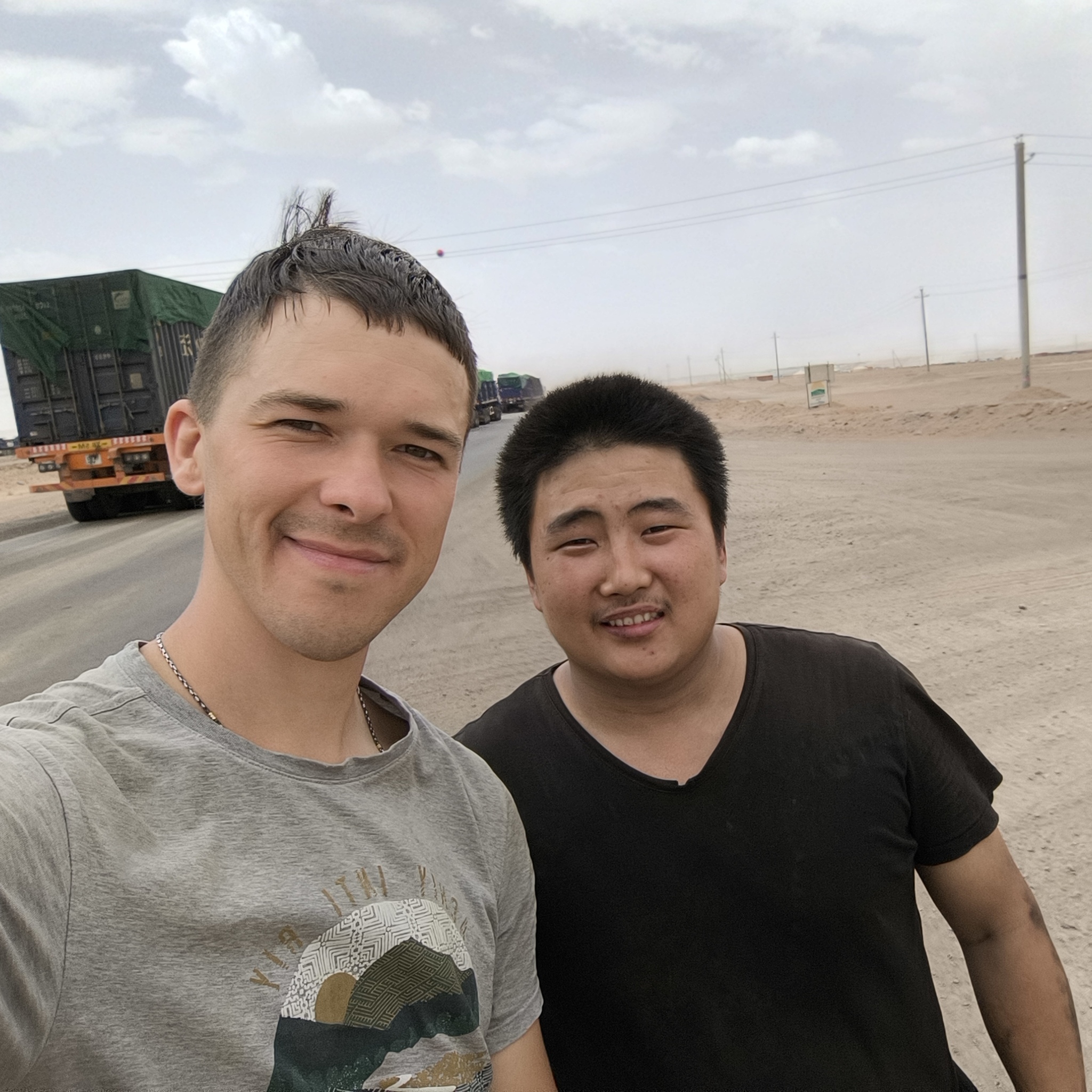 На этом мы с ним попрощались и я остался на трассе один. Погода испортилась. Неба совсем не видно. Горячий ветер с каждой минутой становится всё сильнее. Теперь тот песок, что я так хотел увидеть в Гоби - везде. Ветер буквально избивает им меня. Верните меня в то прекрасное место, где я недавно спал. Песок - отмена! Отмена!