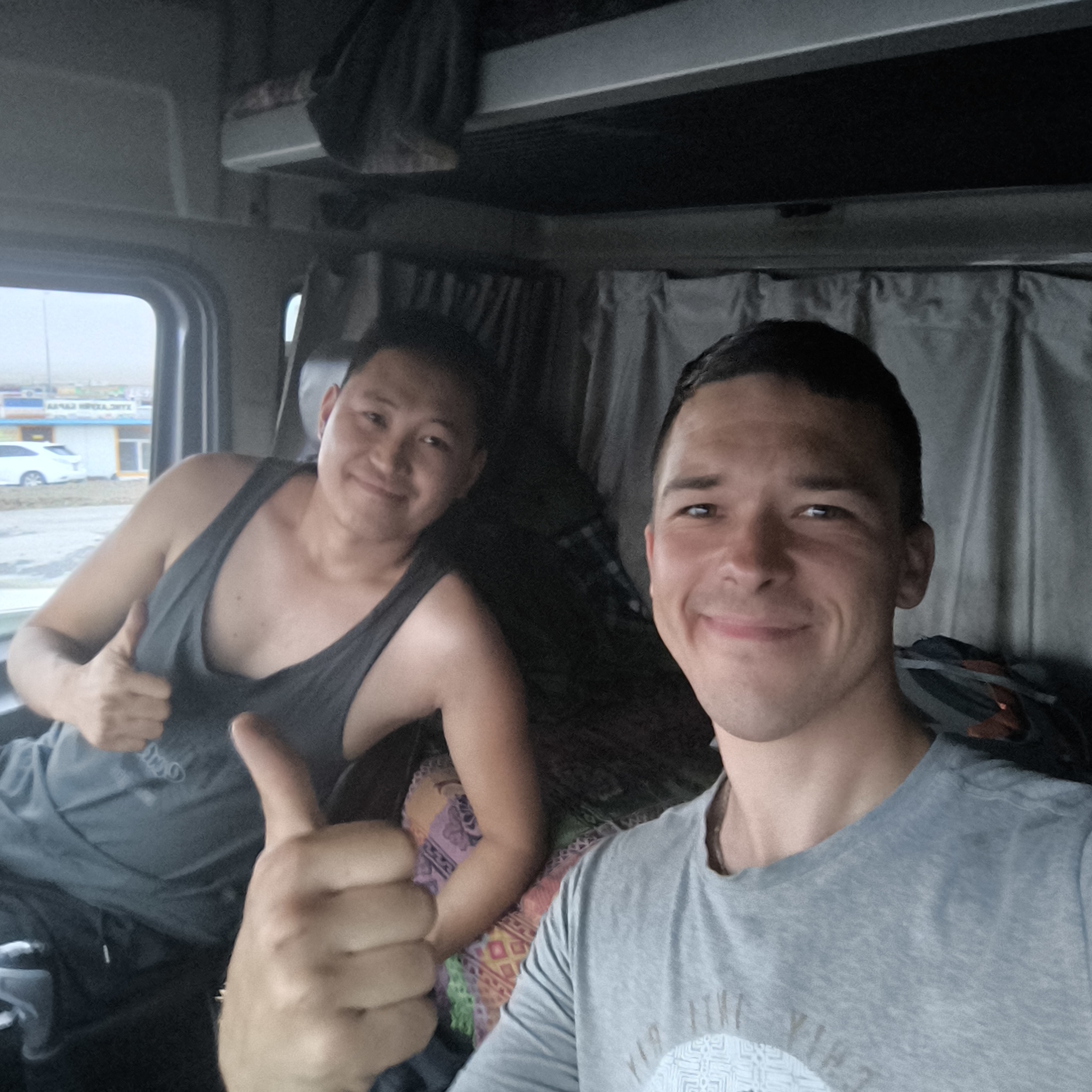 Останавливается дальнобойщик Мункх, едет обратно на загрузку угля. Внутри работает кондиционер, а мне протягивают баночку холодной Coca-Cola. Ох. Контраст.