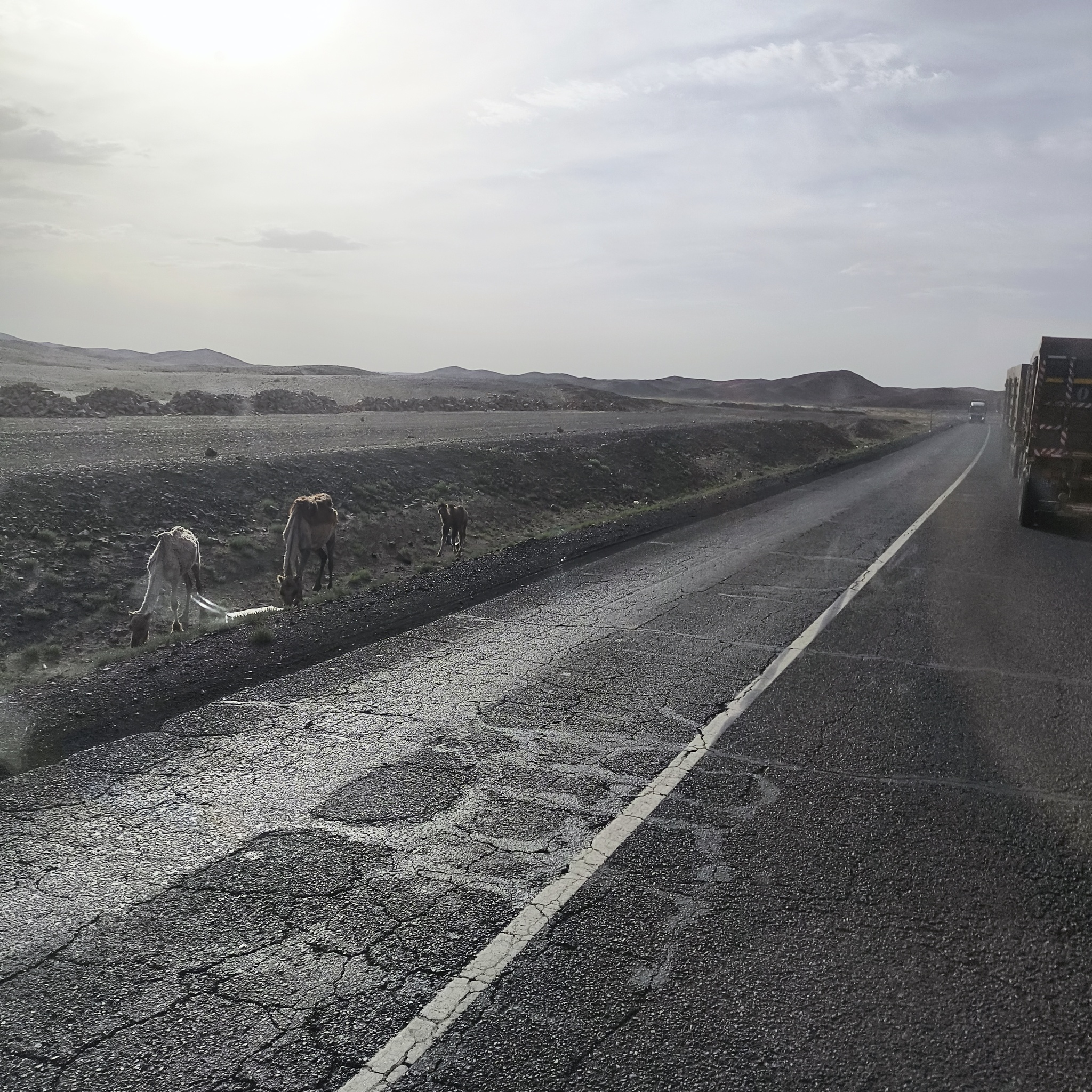 Вдоль дороги то и дело лежат трупы лошадей, верблюдов, коз, кажется, я разгадал загадку. На равнине почти ничего не растет, а у дороги множество канав и пригорков, образующих тень, где иногда скапливается вода и дают ростки растения. Их едят животные, удобряют почву ещё больше, а кто-то и вовсе умирает. Так и получается, что вдоль дороги посреди пустыни целые аллеи.