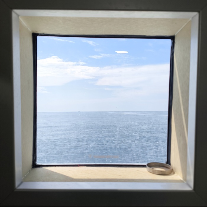 Остановились в 30 километрах от берега, стоим посреди пролива. Что случилось? Пошли задним ходом... Похоже, зацепили что-то, может сеть? У парома вряд ли стоит водомёт, вполне можно намотаться.