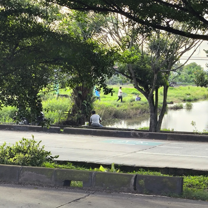 О, рыбаки! Кто-то даже копает червей у дороги... Присоединился бы, но нужно успеть засветло покинуть город.