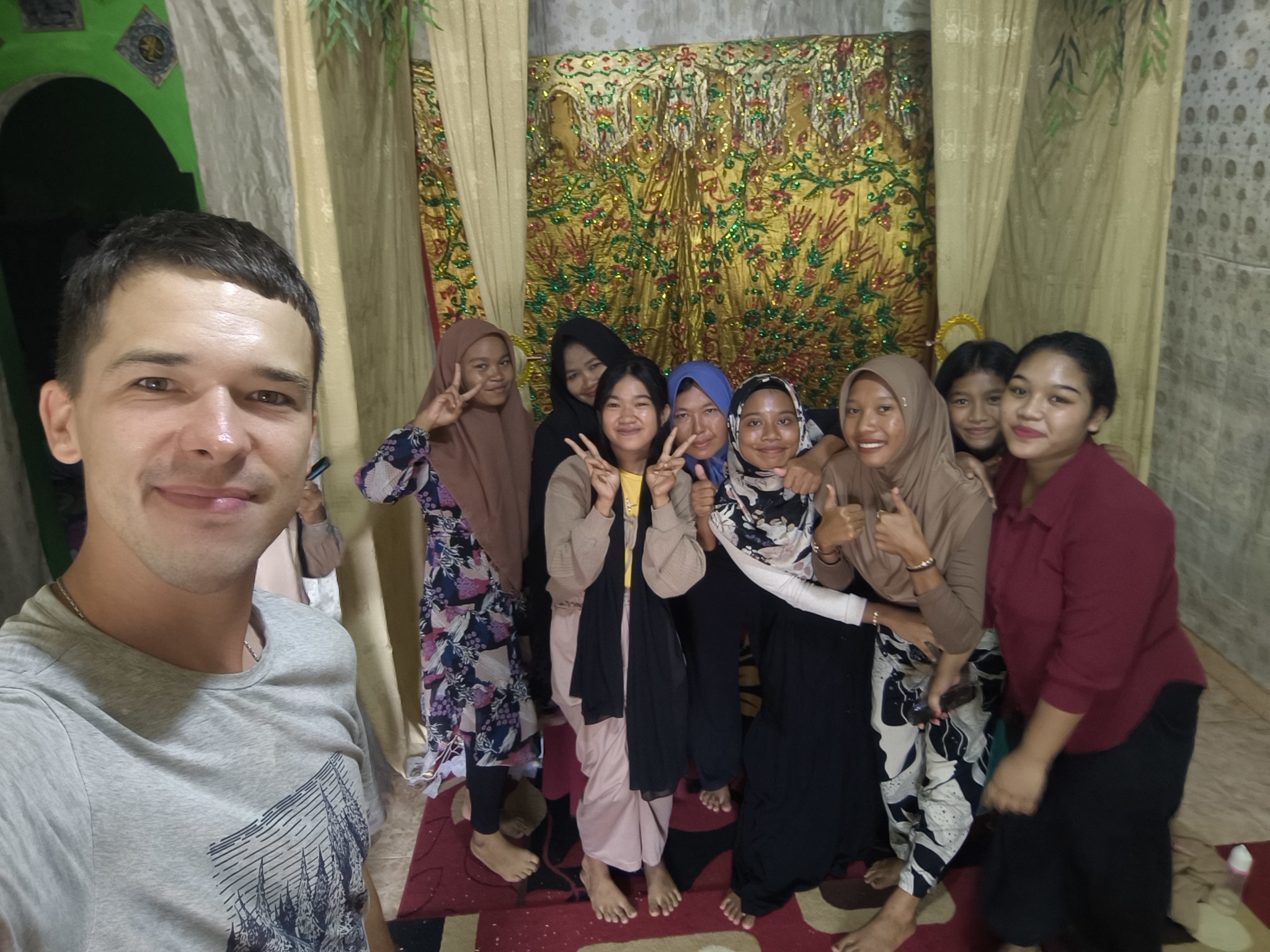 Вчера я узнал, что жених живёт напротив. Предположил, что и брак, в таком случае, заключили родители детей. Зукардин подтвердил. Детям, правда, уже 25 (невеста) и 35 (жених) лет. Начиная с 17 лет родители ищут пару своим чадам и лишь в случае, когда есть сильная "несовместимость", свадьба не состоится. Так, например, было у самого Зукардина. Пошутил, мол, "Так ты и оказался на Калимантане на 10 лет, да?". Вероятно.