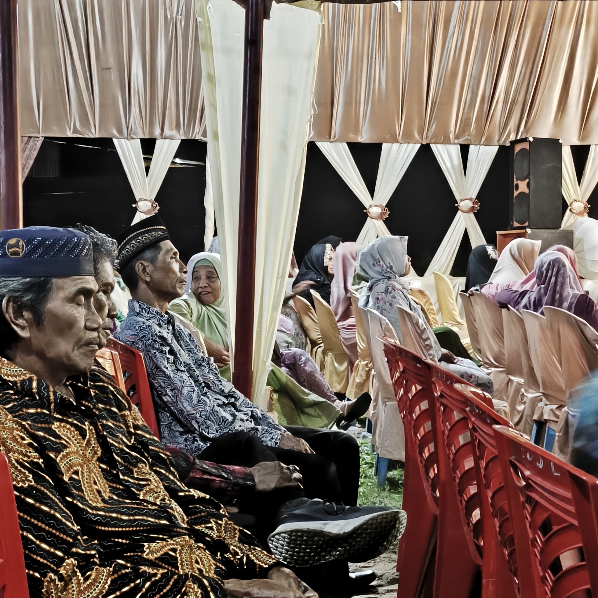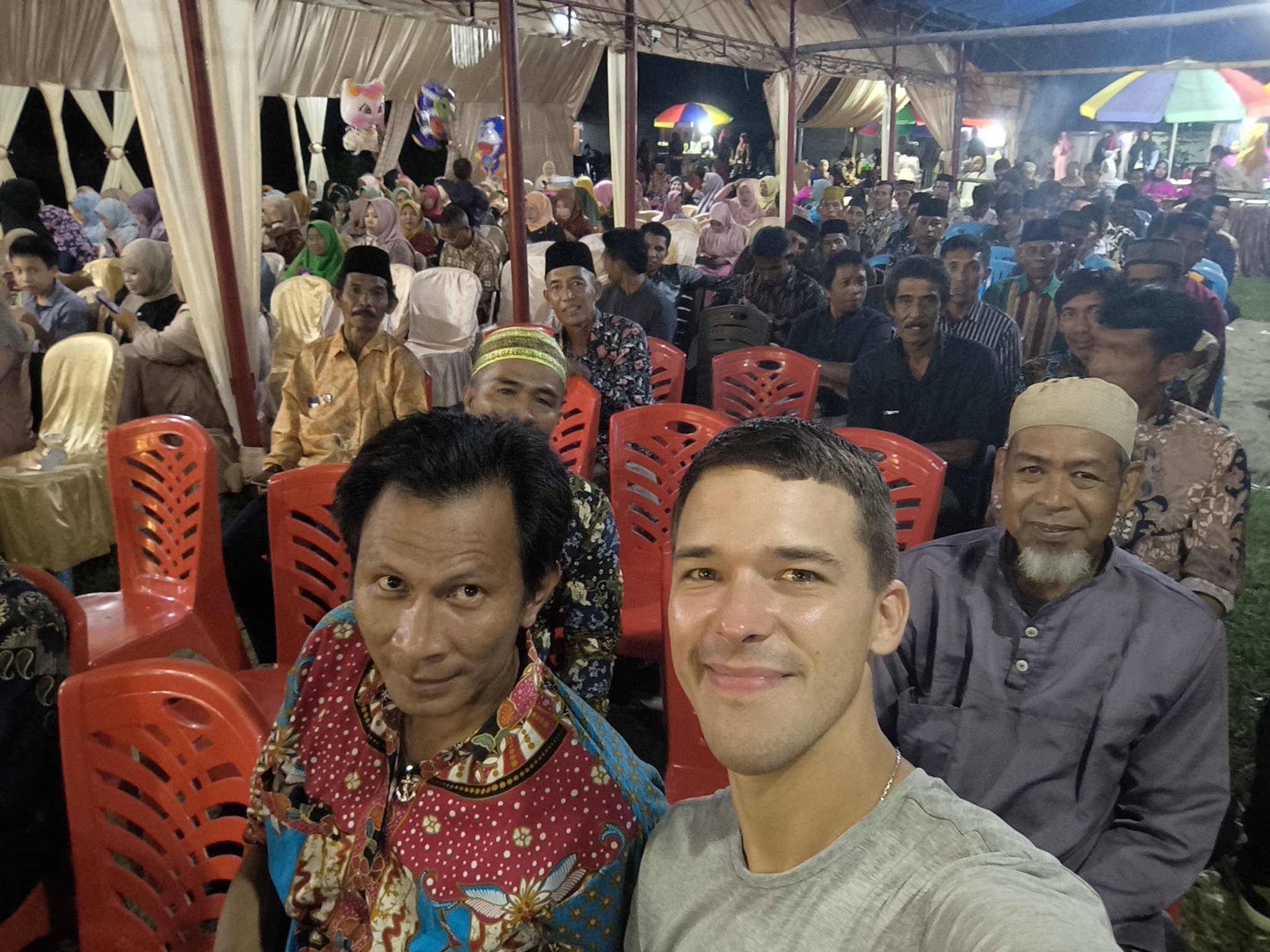 Мест в зале почти не осталось. Каждый новый гость приходит и заводит диалог с Эманом и Зукардином, пытаясь узнать, кто я. Вопросы задают тоже через них. Похоже, окружающие считают, что те понимают русский язык. Забавно.