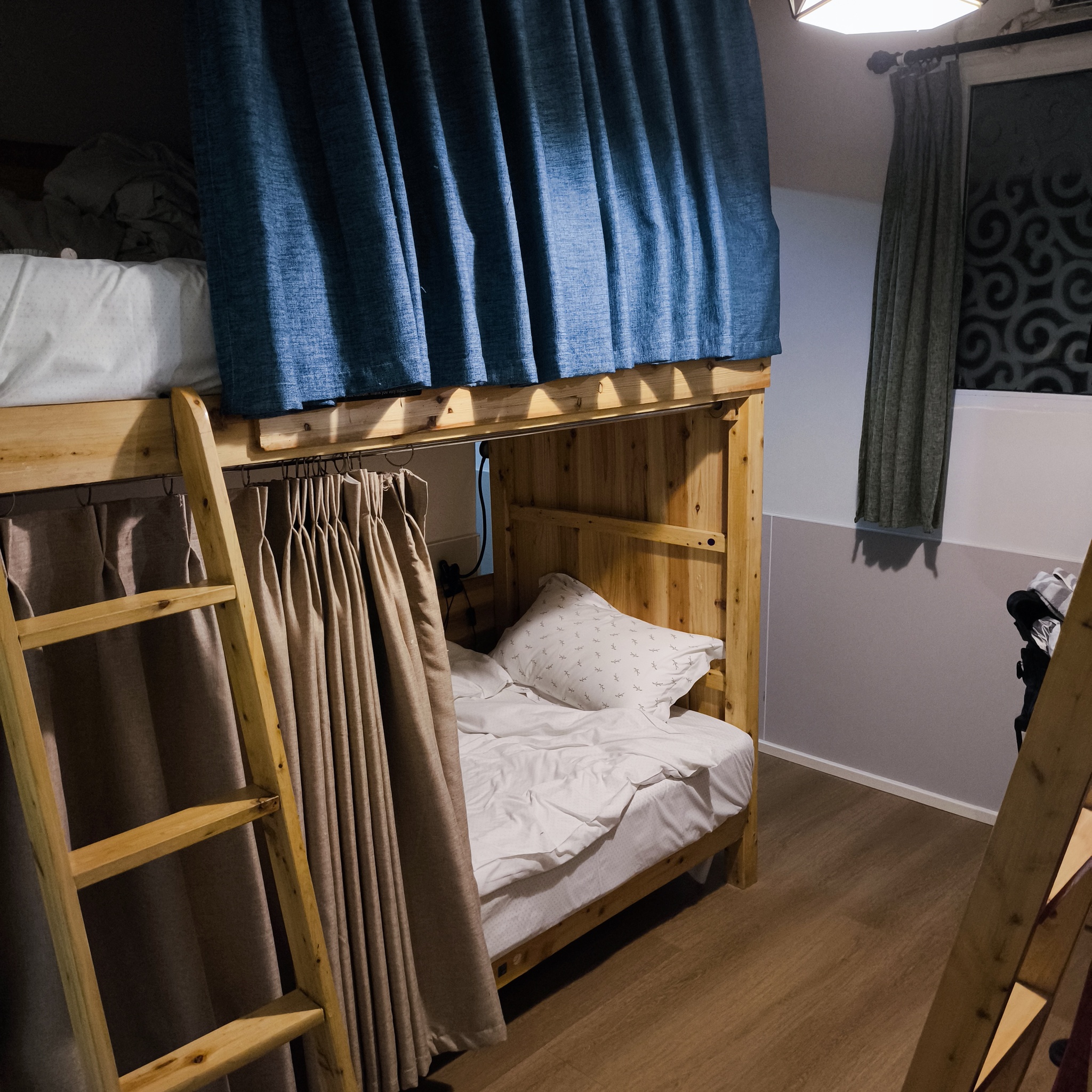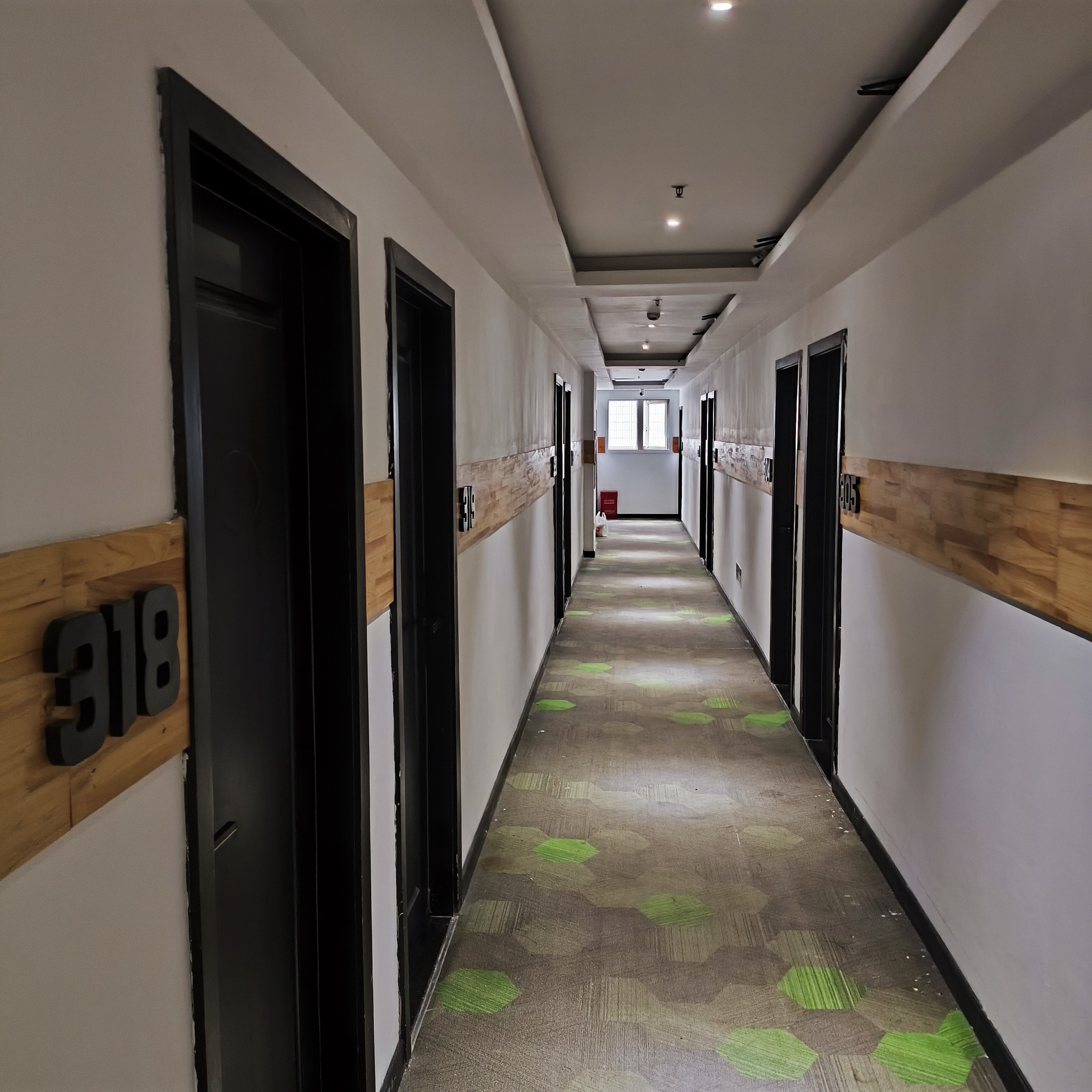 Номера находятся на отдельном этаже, ты вводишь пароль на своей двери и оказываешься в 4-х или 6-местной комнате со своей ванной. Очень уютно.